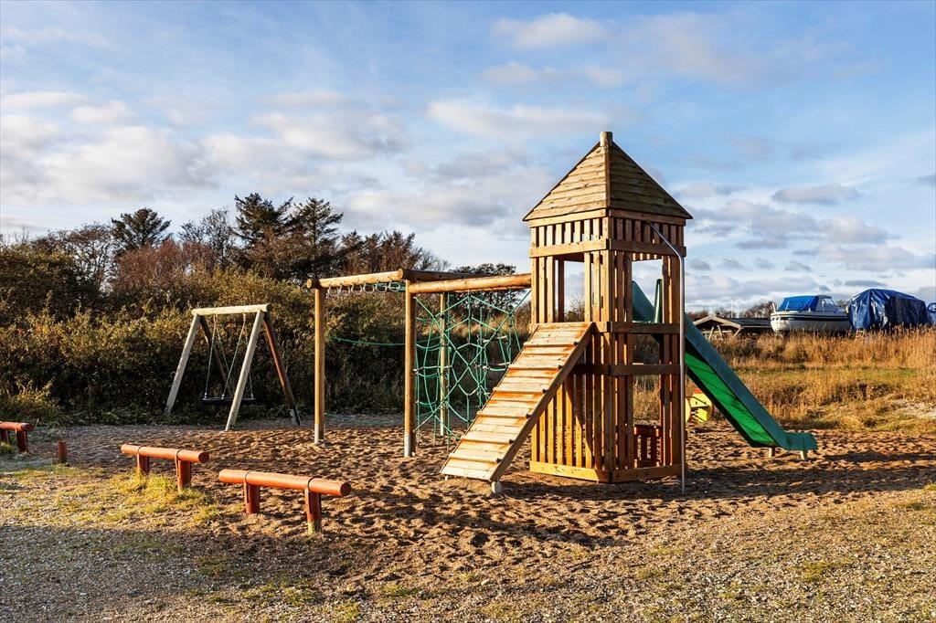 Fra fire af soveværelserne er der direkte adgang til husets udearealer, så du kan nemt komme ud i den friske luft og nyde fuglesangen, så snart du vågner. En stor træterrasse mod syd har både overdækkede og åbne områder, så du altid kan finde en god siddeplads i solen. Græsplænen er perfekt til leg og boldspil, og der er også en gynge til børnene. Mens de yngste leger, kan de voksne nyde en ekstra kop kaffe på terrassen, inden det er tid til at tage på udflugt. Der er også en indhegnet hundegård på 30m2, så familiens firbenede ven kan boltre sig sikkert og frit.