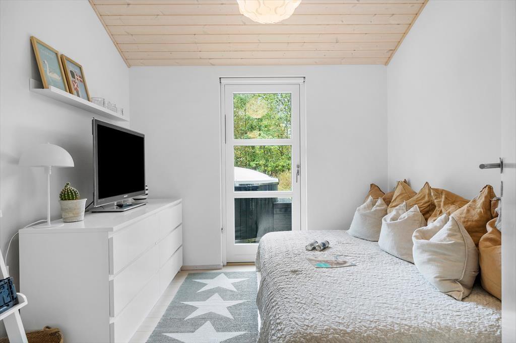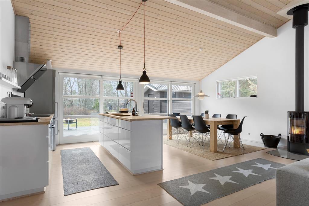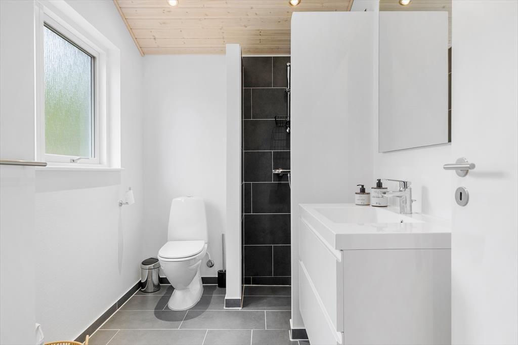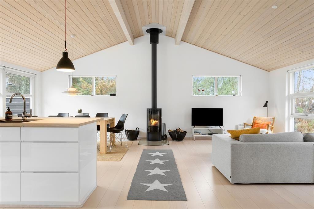 Når du træder ind i sommerhuset, mødes du af et lyst og venligt rum, hvor der er tænkt på alle detaljer for at gøre ferien behagelig. De åbne og rummelige opholdsrum er perfekt indrettet til at samle familien eller vennerne til hygge, spil og samtaler. De to badeværelser gør huset ideelt for par, der ønsker deres eget privatliv – begge badeværelser er moderne og funktionelle, hvilket giver komfort hele vejen igennem. Den veludstyrede køkken-alrum gør det nemt at tilberede måltider, samtidig med at I kan nyde hinandens selskab. Fra stuen er der direkte adgang til husets terrasse, som er ideel til at nyde de lange sommeraftener.