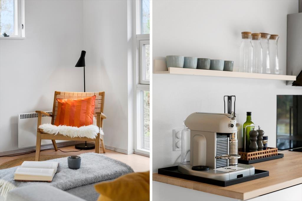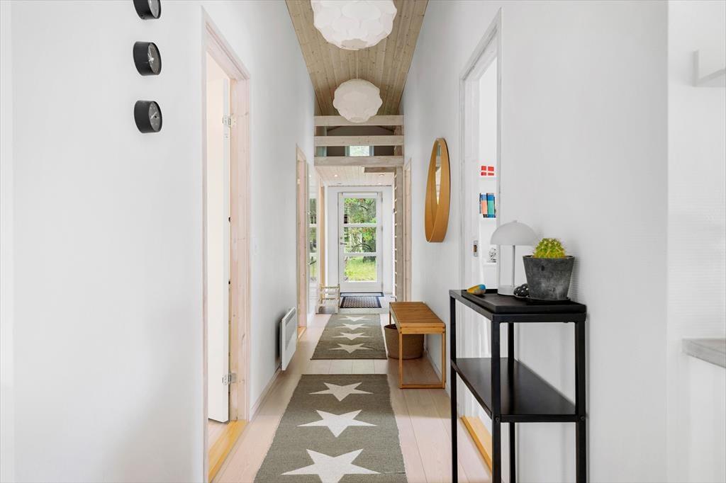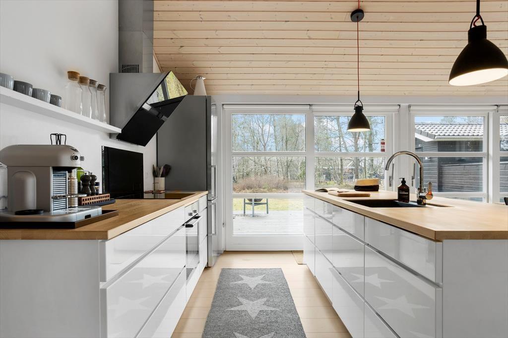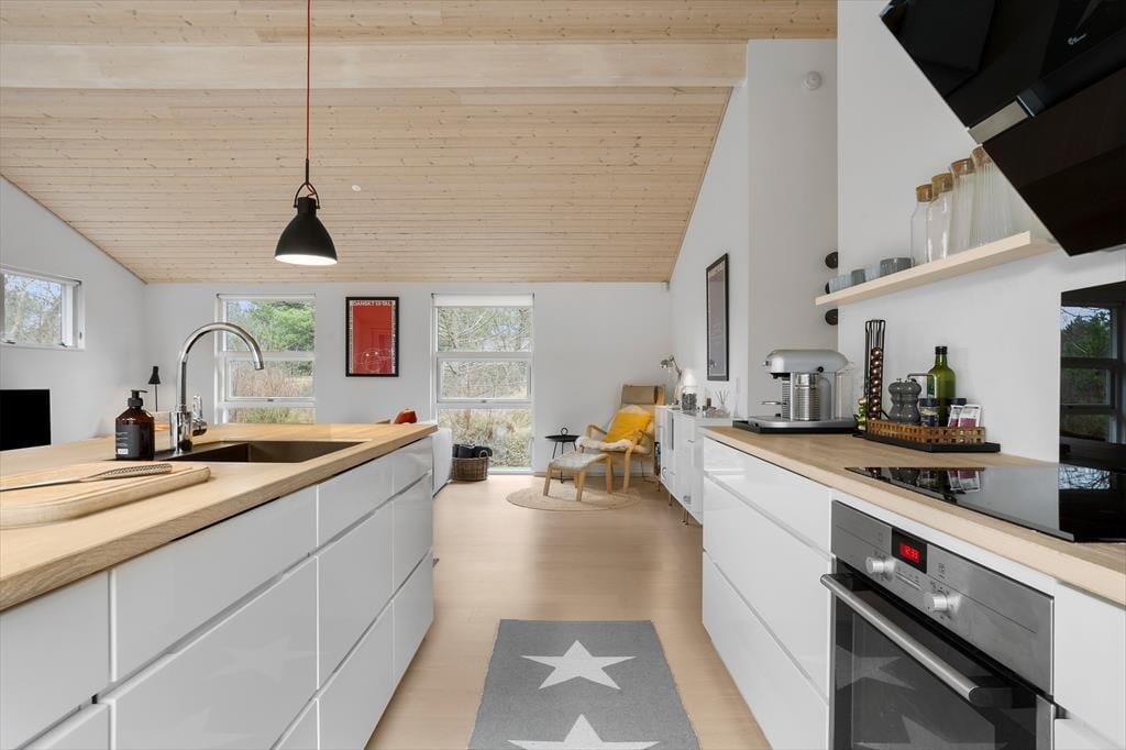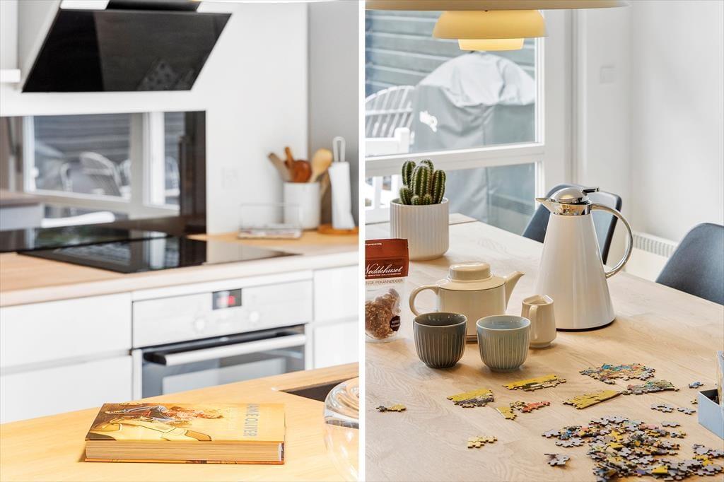 Når du træder ind i sommerhuset, mødes du af et lyst og venligt rum, hvor der er tænkt på alle detaljer for at gøre ferien behagelig. De åbne og rummelige opholdsrum er perfekt indrettet til at samle familien eller vennerne til hygge, spil og samtaler. De to badeværelser gør huset ideelt for par, der ønsker deres eget privatliv – begge badeværelser er moderne og funktionelle, hvilket giver komfort hele vejen igennem. Den veludstyrede køkken-alrum gør det nemt at tilberede måltider, samtidig med at I kan nyde hinandens selskab. Fra stuen er der direkte adgang til husets terrasse, som er ideel til at nyde de lange sommeraftener.