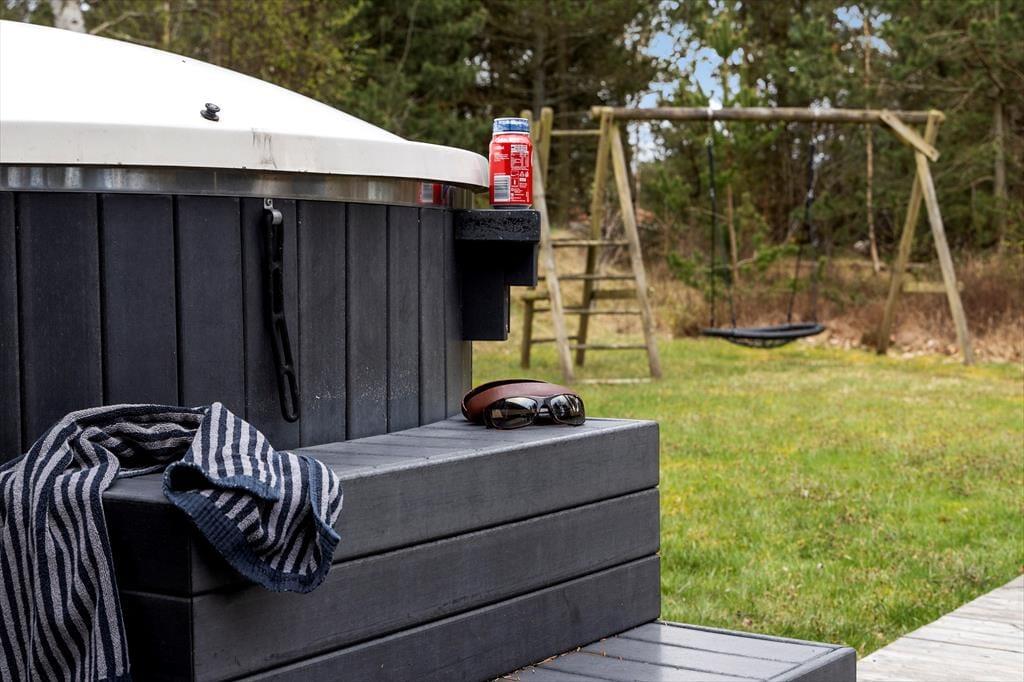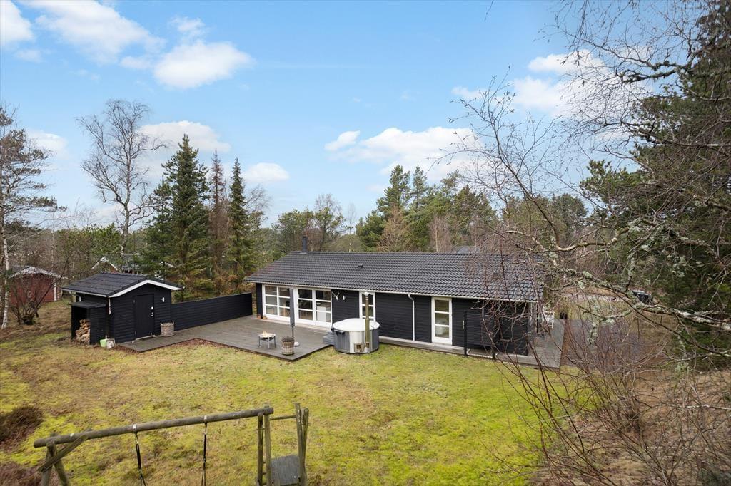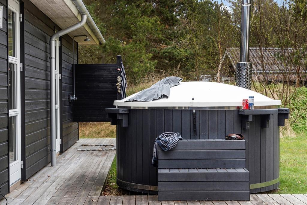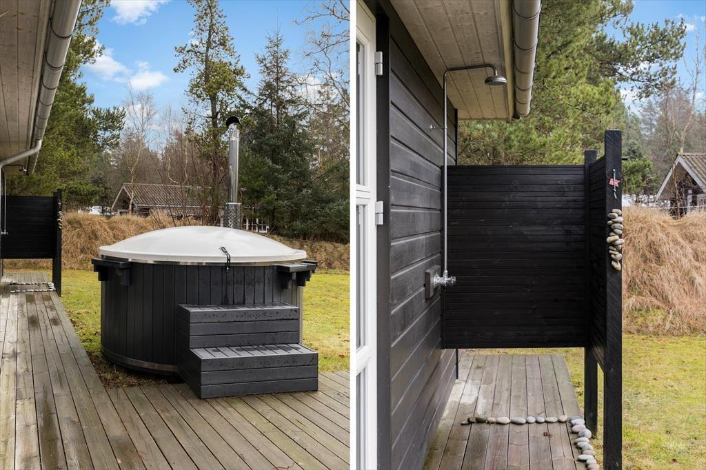 Sommerhusets udendørsarealer er noget helt særligt. Den store terrasse byder på et vildmarksbad, hvor du kan slappe af og nyde den friske luft under åben himmel. Her kan du tage en forfriskende dukkert eller blot lade tankerne flyde, mens du ser solnedgangen. Området omkring huset indbyder til både rolige gåture og løb, da der er flere små stisystemer i nærheden. Den ugenerede have giver også mulighed for leg og afslapning i solen, så du kan tilbringe tid både i skyggen og i solen afhængig af dit humør.