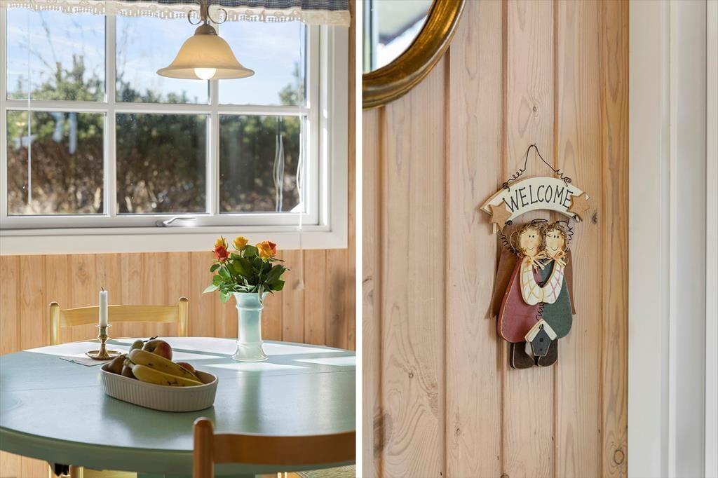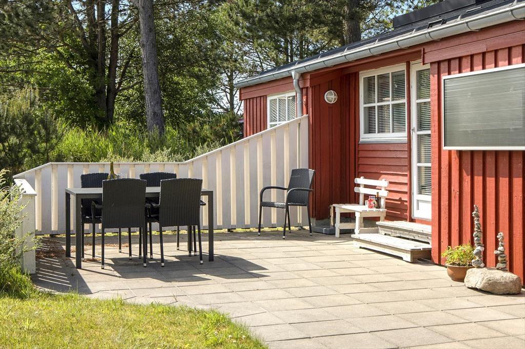 Udendørsarealerne indbyder til afslapning og udeliv i smukke, naturskønne omgivelser. Sommerhuset ligger på en skøn grund, hvor du kan finde et roligt hjørne til morgenkaffen eller nyde en god bog i solen. Der er rig mulighed for at tilbringe lange dage udendørs, hvad enten du vil grille, lege med familiens yngste eller bare nyde den friske luft. Den korte afstand til den børnevenlige badestrand gør det let at tage en spontan dukkert eller bygge sandslotte med børnene. Og hvis du har din hund med, vil den uden tvivl også nyde at udforske de naturskønne omgivelser.