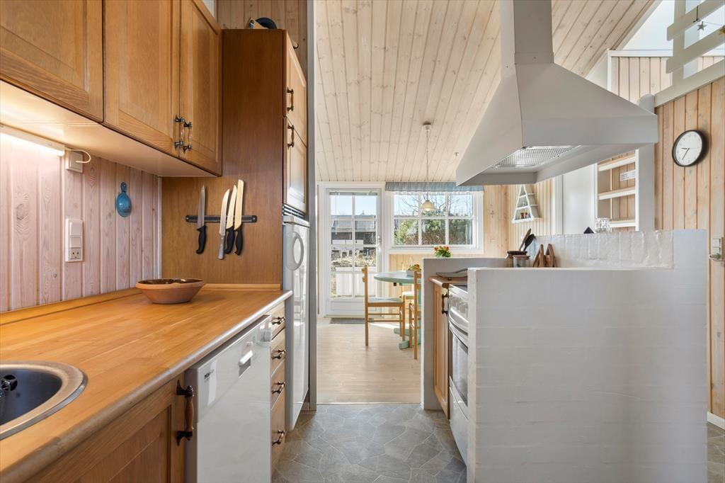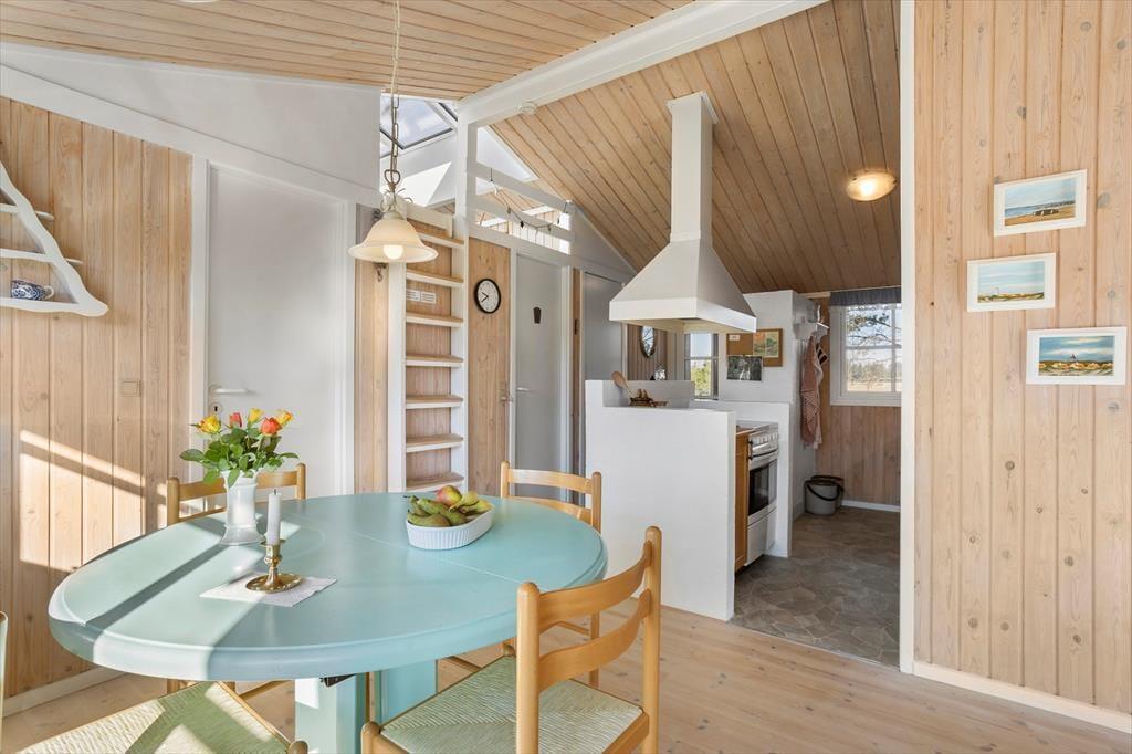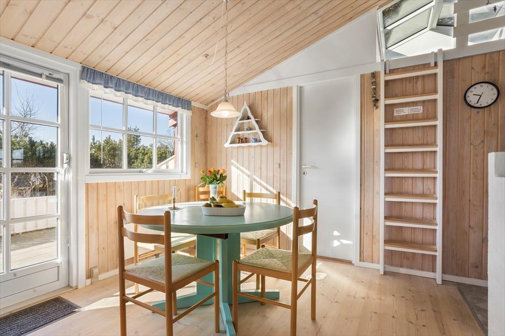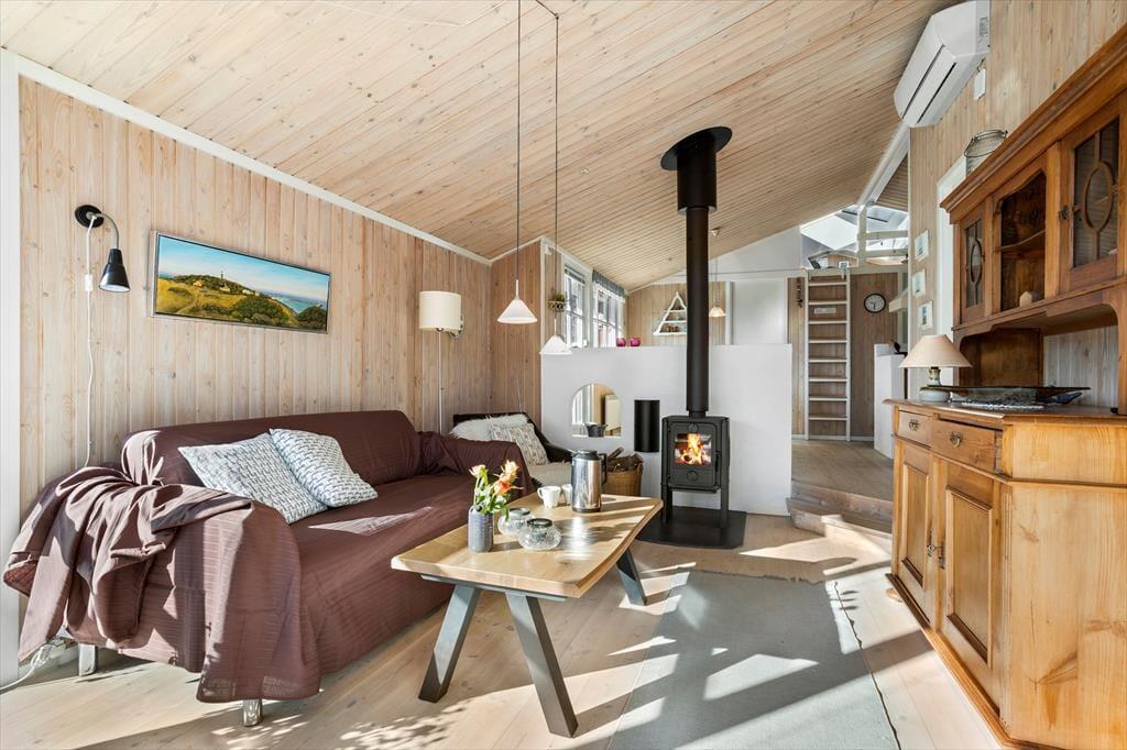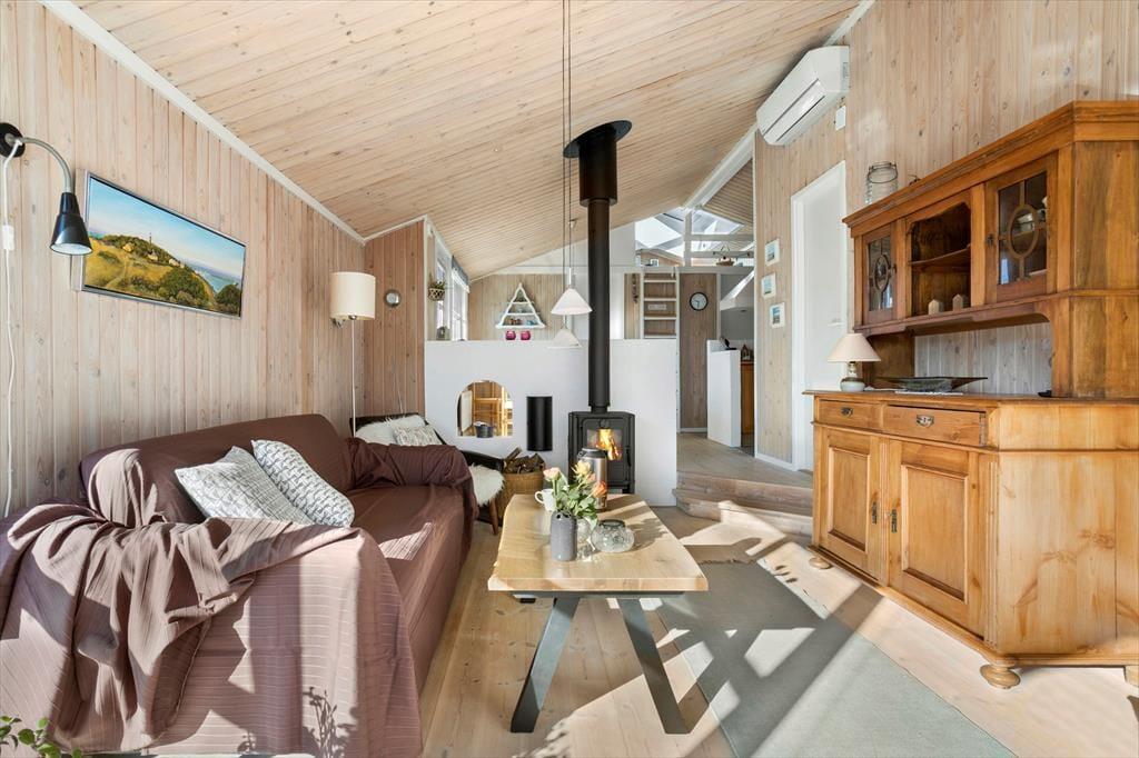 Sommerhuset på Musvågevej 116 byder dig indenfor til en varm og indbydende atmosfære. Her kan du glæde dig til hyggelige stunder foran brændeovnen, der skaber den helt rette stemning på kølige aftener. Indretningen er lys og rummelig, så du har god plads til at nyde din ferie i ro og mag. Køkkenet ligger i åben forbindelse med opholdsstuen, så der er rig mulighed for at være sammen med familien, mens maden bliver tilberedt. Huset er velegnet til både par og familier, der ønsker en ferie med komfort og hjemlig hygge.