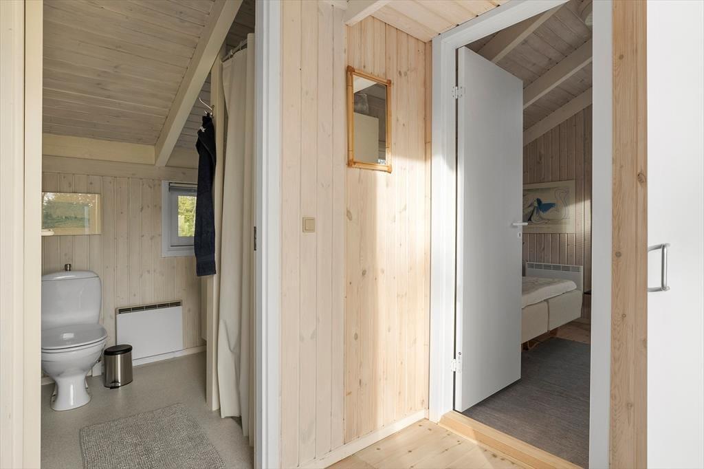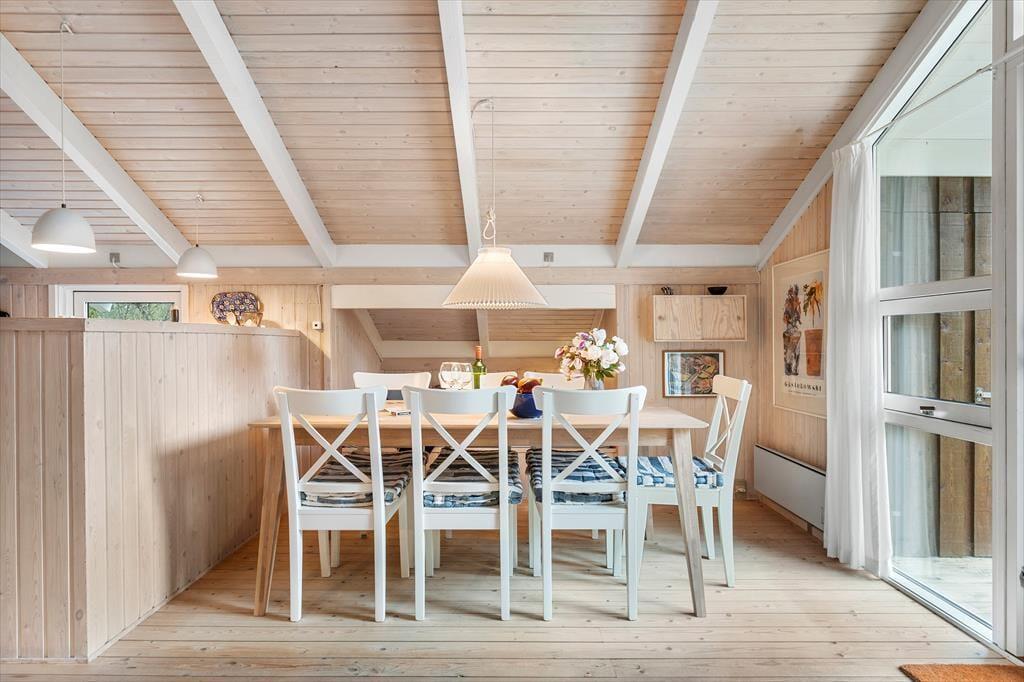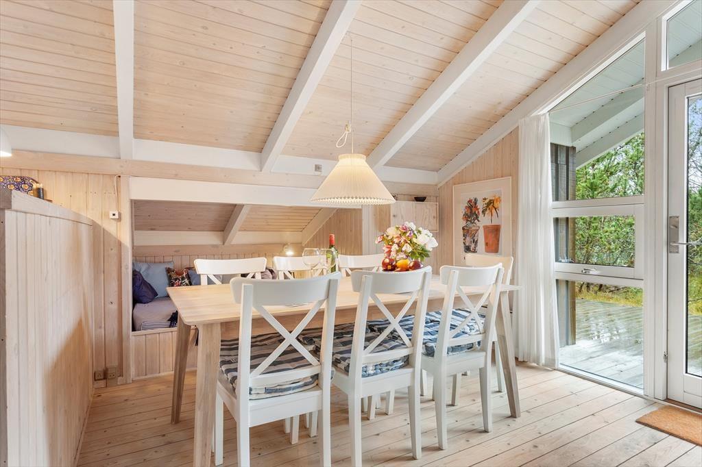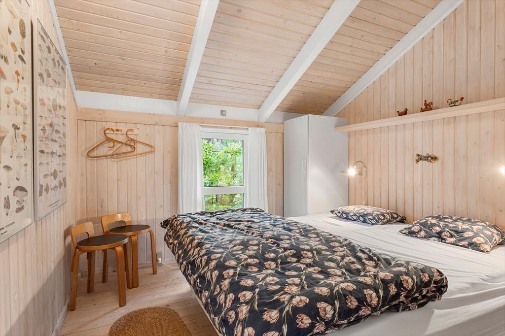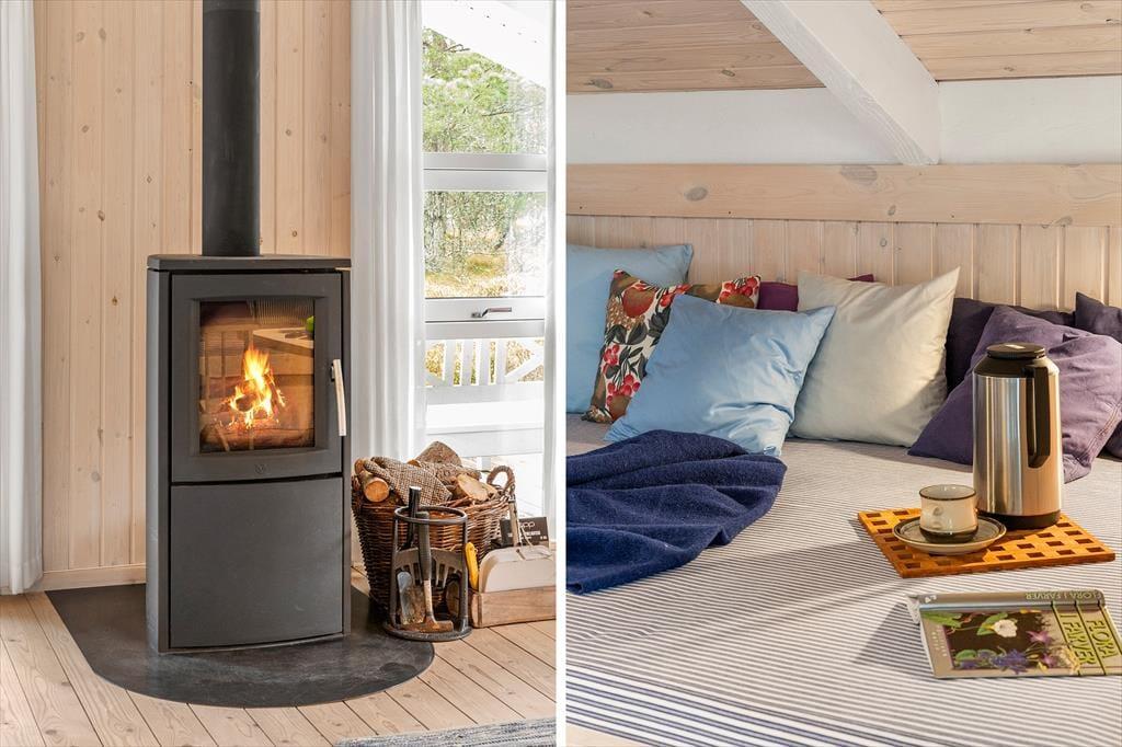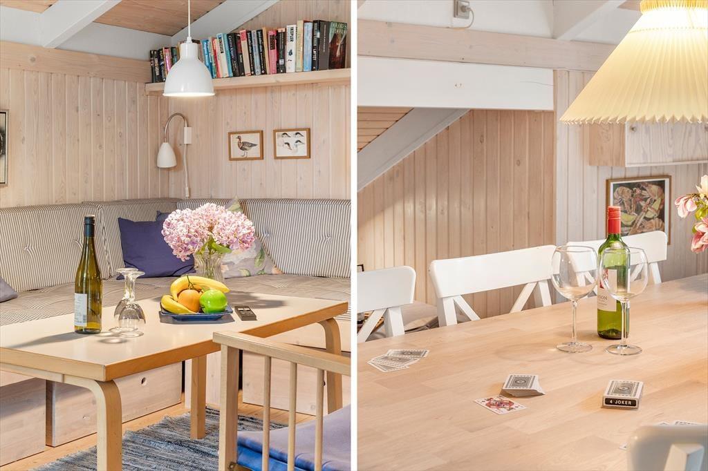 Når du træder ind ad døren, mærker du straks den lyse og imødekommende atmosfære, som gør det nemt at finde feriestemningen frem. Indretningen er hyggelig og smagfuld med en fin balance mellem klassisk sommerhuscharme og moderne komfort. Det lyse opholdsrum danner rammen om samværet – her kan I nyde en kop kaffe i sofaen, spille spil ved spisebordet eller varme jer foran brændeovnen, mens I lytter til naturens stille sus udenfor. I stuen er der desuden en hyggelig alkove, hvor man kan tage en middagslur, læse en god bog eller lade børnene hygge sig med tegnefilm. Køkkenet ligger i åben forbindelse med stuen, så samtalen kan fortsætte, mens du laver mad, og med to badeværelser er der god plads til, at alle kan få en behagelig start på dagen – det ene badeværelse ligger i annekset, som dermed fungerer perfekt som en selvstændig afdeling for dem, der ønsker lidt ekstra privatliv. Det tilhørende anneks byder desuden på ekstra sovepladser og giver mulighed for, at nogle i selskabet kan trække sig lidt tilbage og nyde roen, når behovet melder sig.
