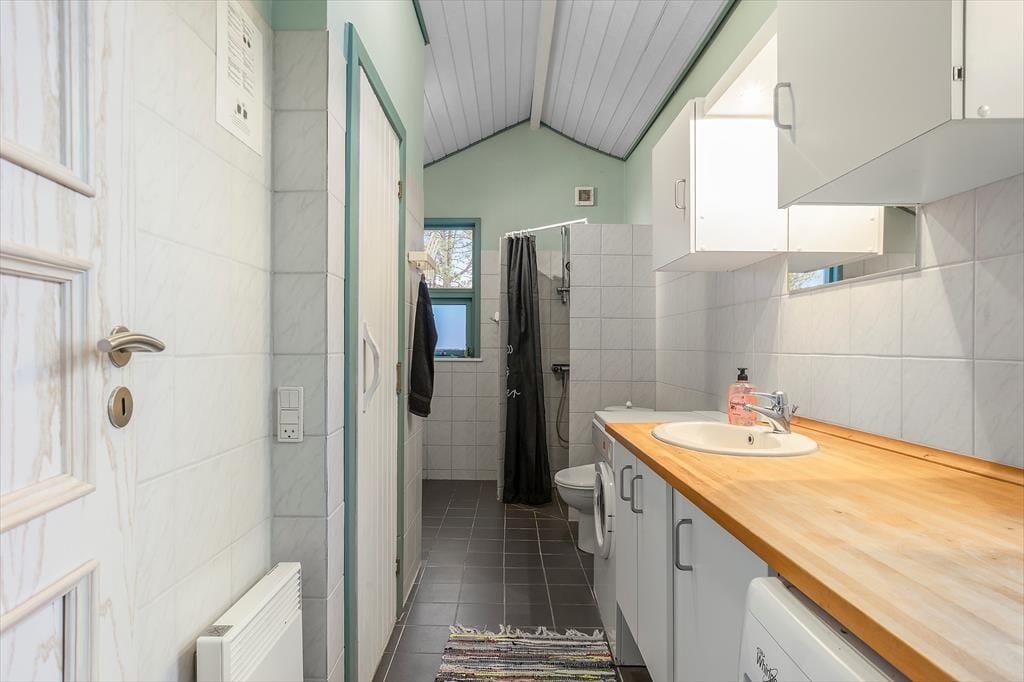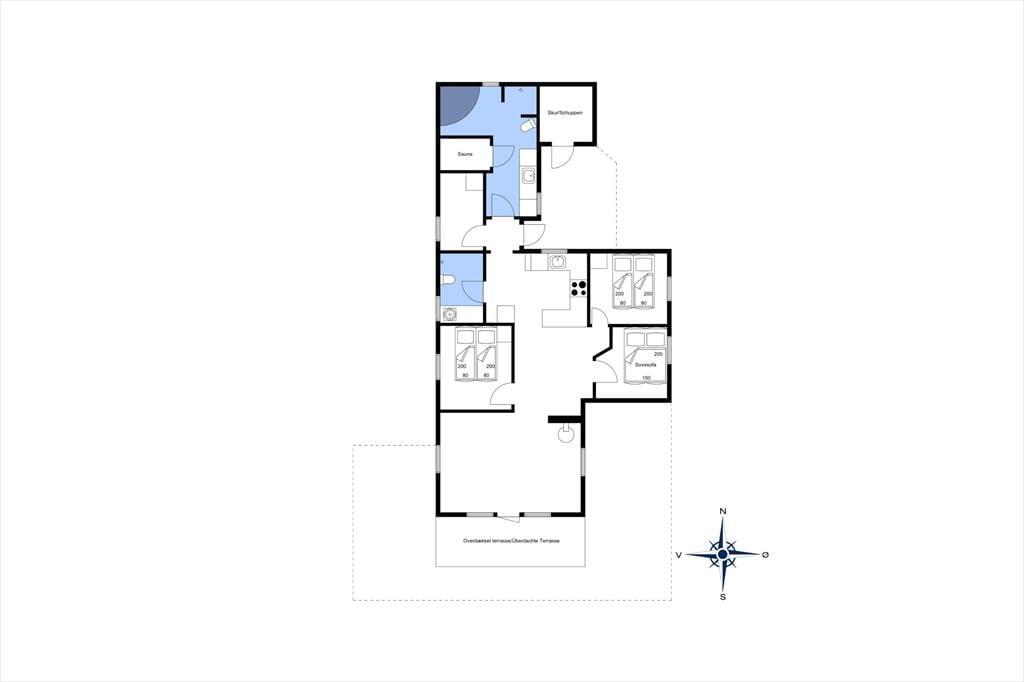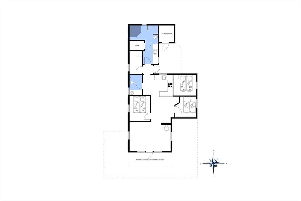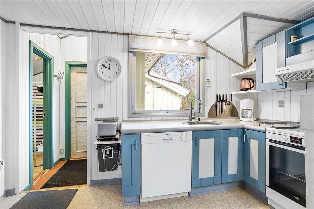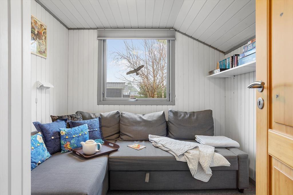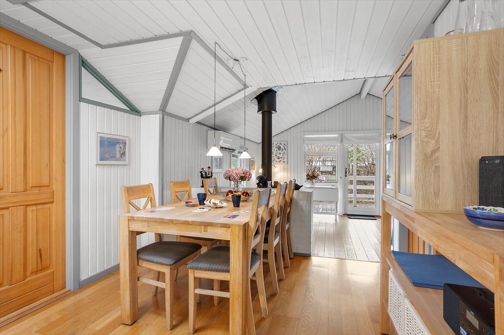 Indenfor mødes du af en varm og indbydende atmosfære, hvor ferien straks falder på plads. Husets hjerte er den hyggelige opholdsstue, hvor lyset strømmer ind gennem de store vinduer og giver en fornemmelse af at være tæt på naturen – selv når du sidder indenfor. Her kan I samles til brætspil, filmhygge eller stille stunder med ild i brændeovnen, mens duften af friskbrygget kaffe breder sig. Køkkenet ligger i åben forbindelse med stuen, så madlavningen bliver en naturlig del af fællesskabet. Når det er tid til afslapning, kan du trække dig tilbage til husets wellnessafdeling, hvor både spa og sauna står klar til at forkæle krop og sind. Med to badeværelser er der god plads til, at hele familien kan starte og slutte dagen uden trængsel, og på det ene badeværelse finder du desuden en vaskemaskine, så det praktiske også er på plads.