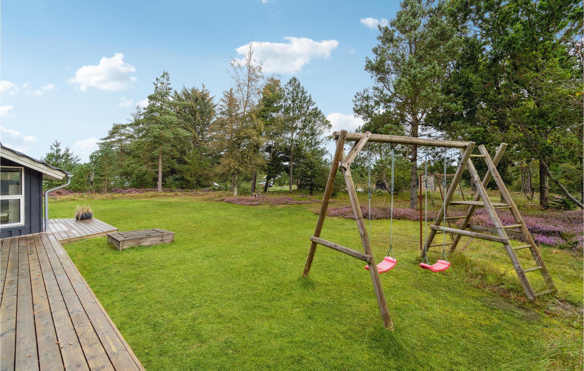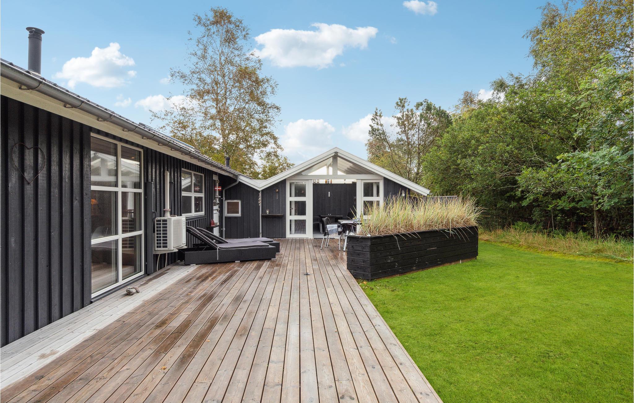Huset ligger på en dejlig grund, der er totalt omkranset af træer og buske. Her kan I tage familien med og glæde jer til en skøn ferie, hvor I ikke kan undgå at komme ned i tempo og bare koble af.