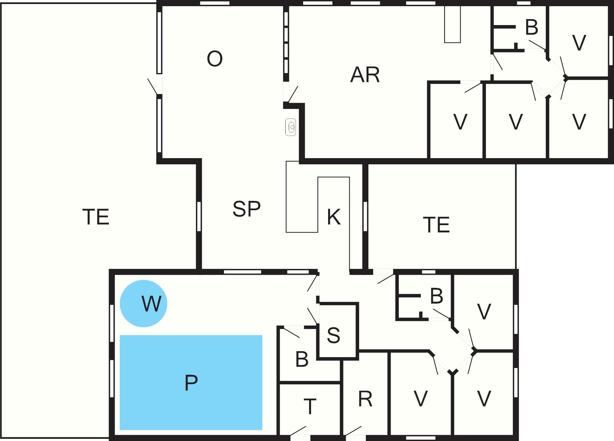 7 Soveværelser: (1DS)+(1DS)+(1DS)+(1DS)+(1DS)+(1DS)+(1DS), barneseng