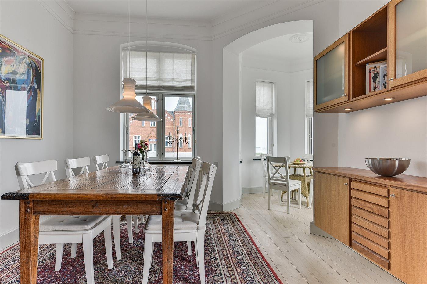 Her kan du nyde de dejlige sommeraftener med overdådige solnedgange fra første parket. Selve huset er lyst og smagfuldt indrettet og udstyret med en pragtfuld stor mahogni træterrasse, hvorfra man kan nyde udsigt og liv på vand og i land.