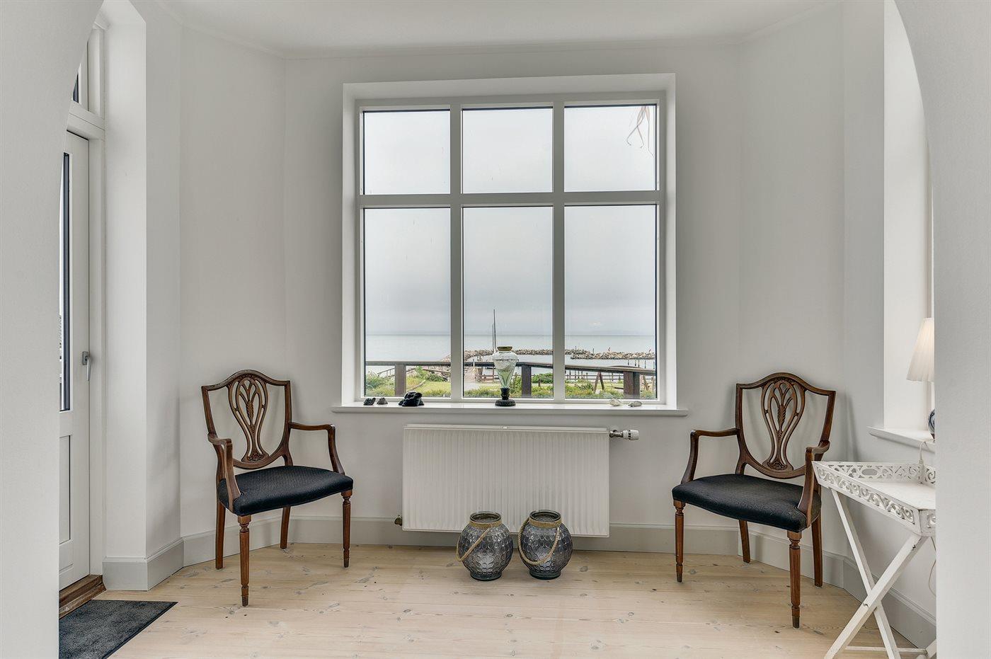 Stor villa i 3 plan med panoramaudsigt over vandet mellem Langeland og Fyn, tæt på Lohals lystbådehavn.