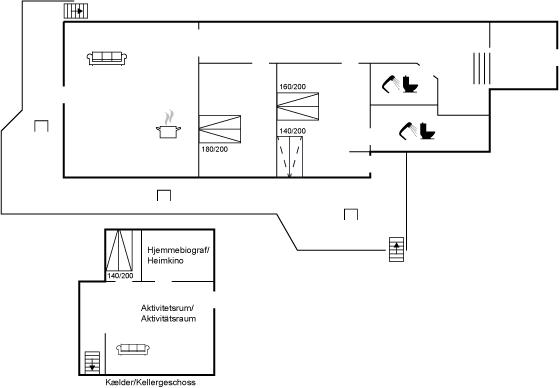 I kælderen er der stort aktivitetsrum med bl.a. hjemmebiograf og andre aktiviteter. Man kan benytte den opstillede X-box eller medbringe sin egen spillekonsol og koble denne til det store TV i hjemmebiografen.