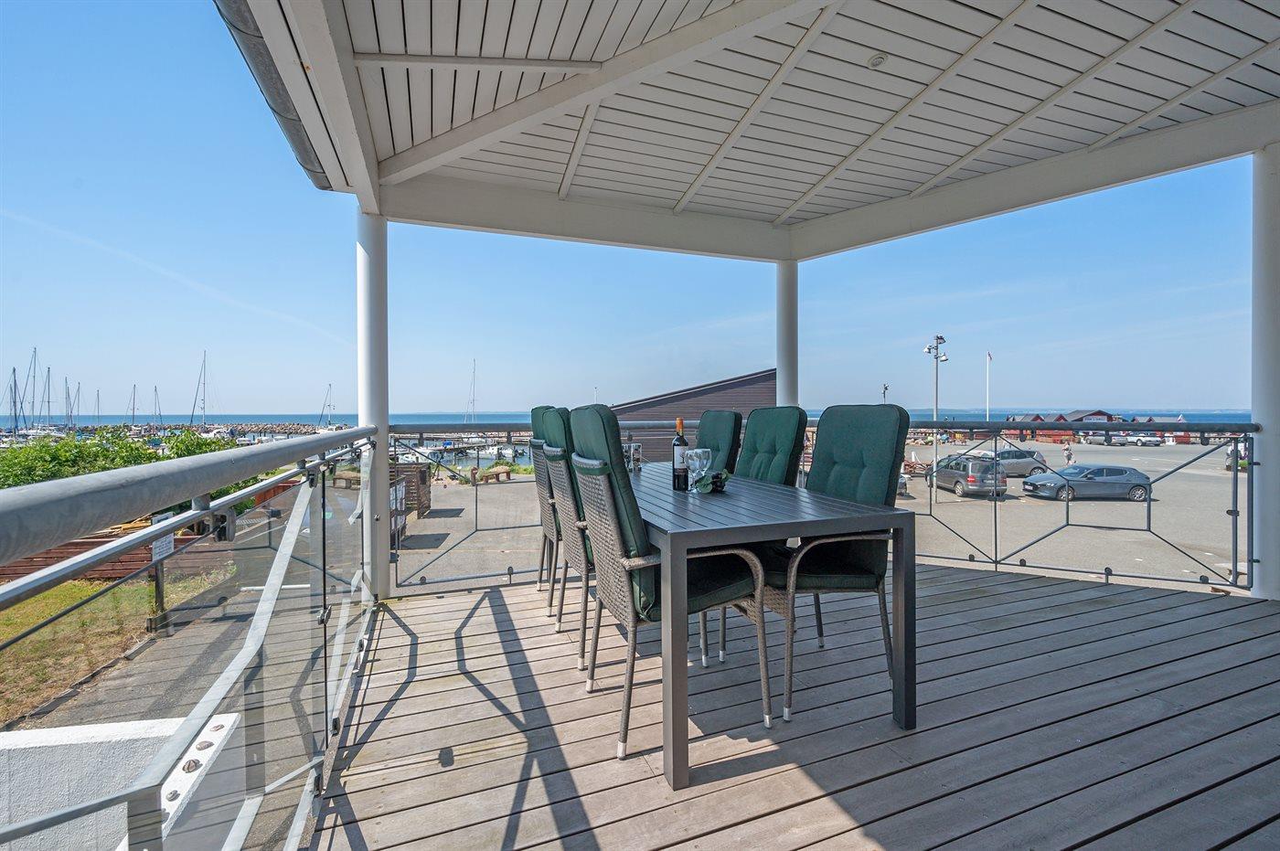 Stor og lækker ferielejlighed med fantastisk havudsigt ved marinaen i Lohals.