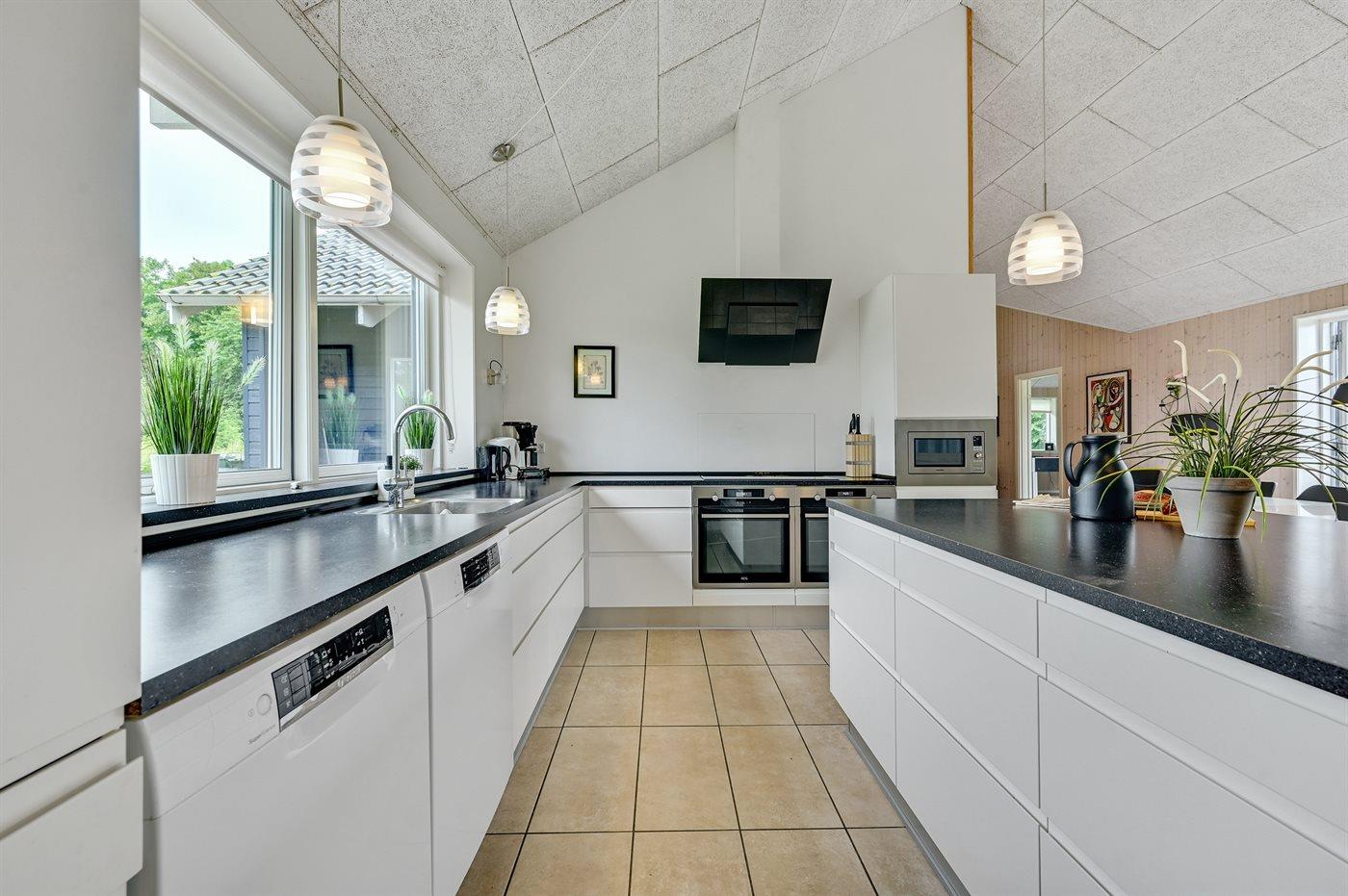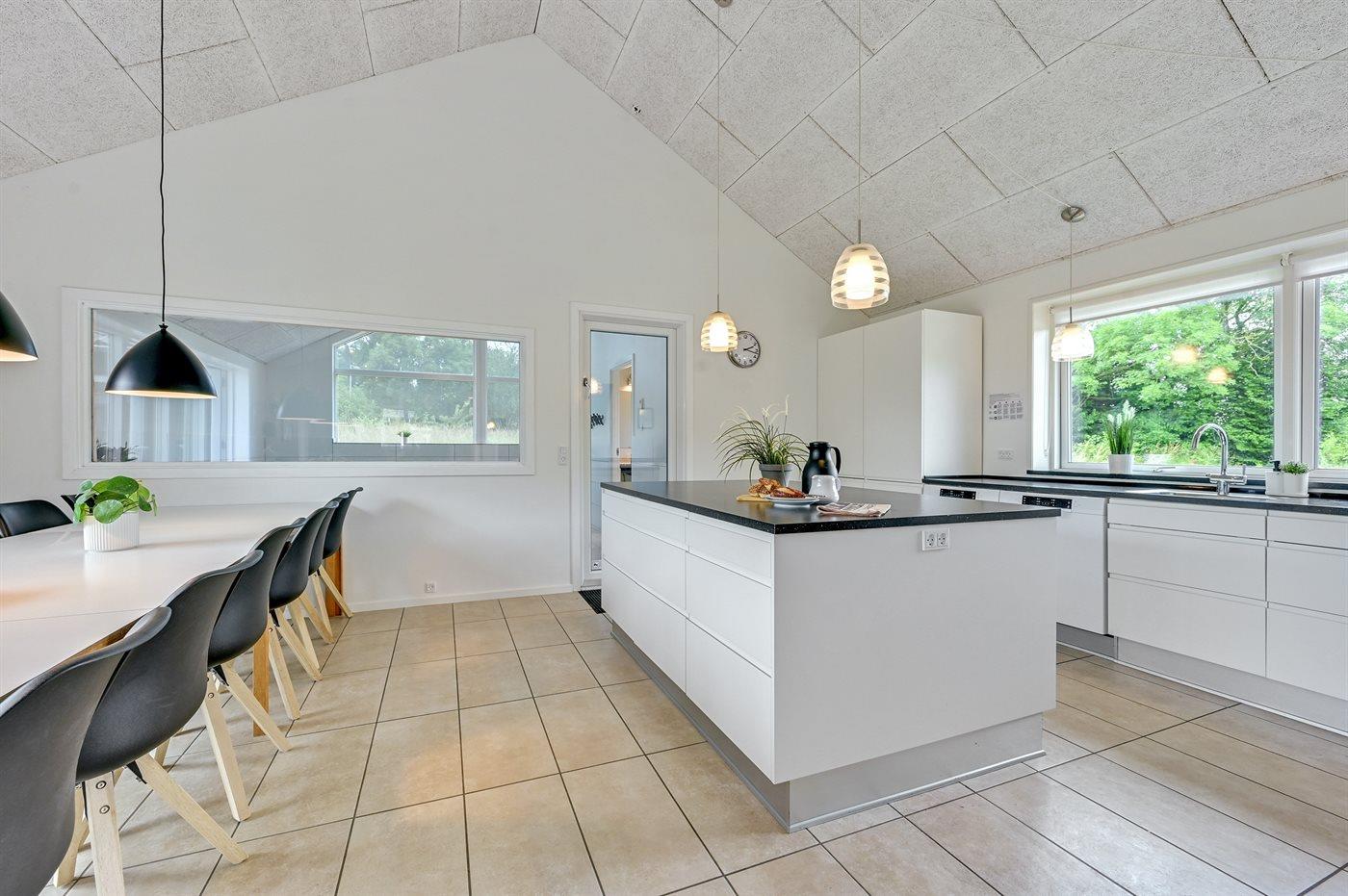 Køkkenet er udstyret med 2 køleskabe. Der er 4 induktionskogeplader, 2 varmluftovne, mikrobølgeovn samt 2 opvaskemaskiner.