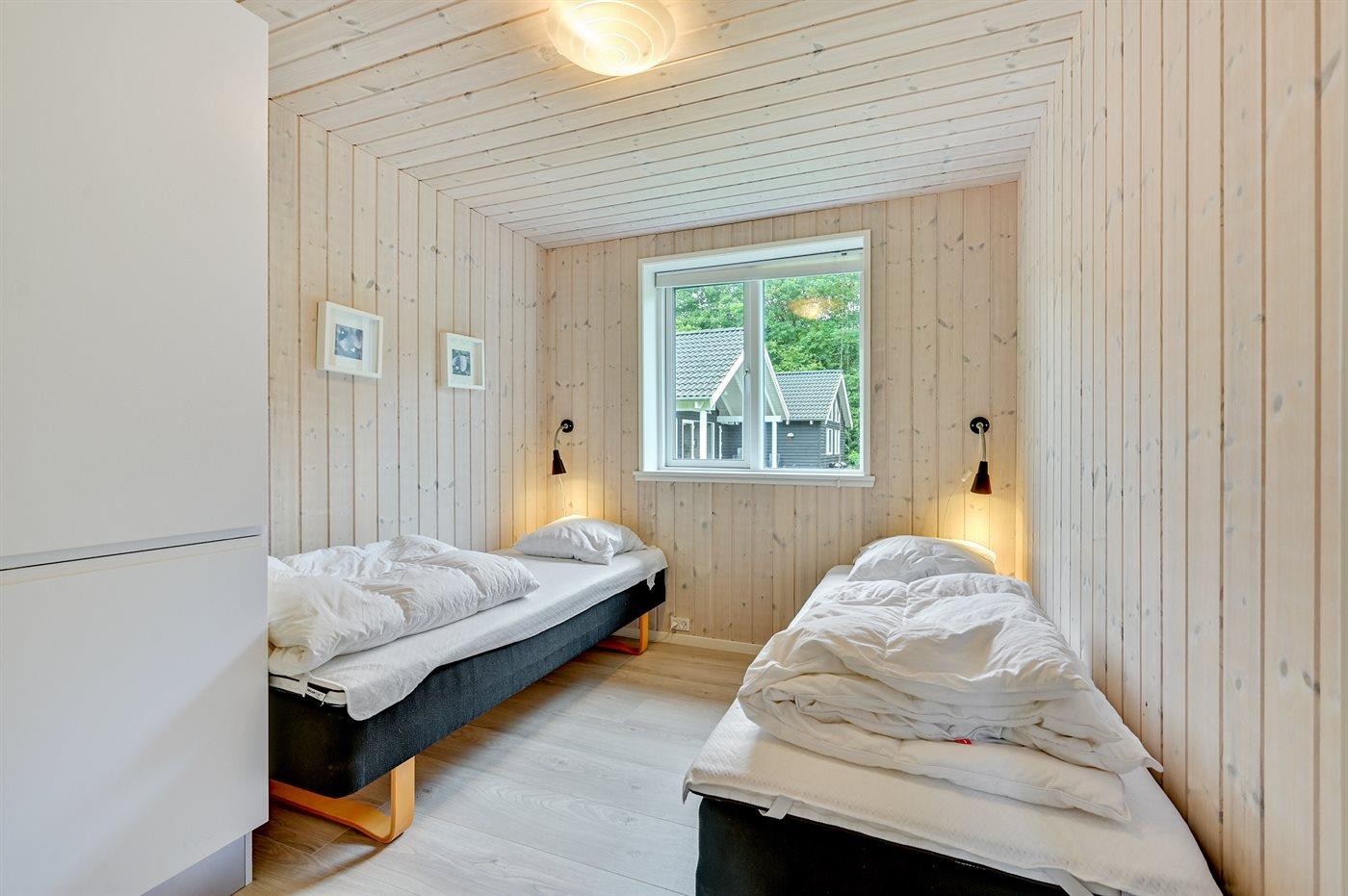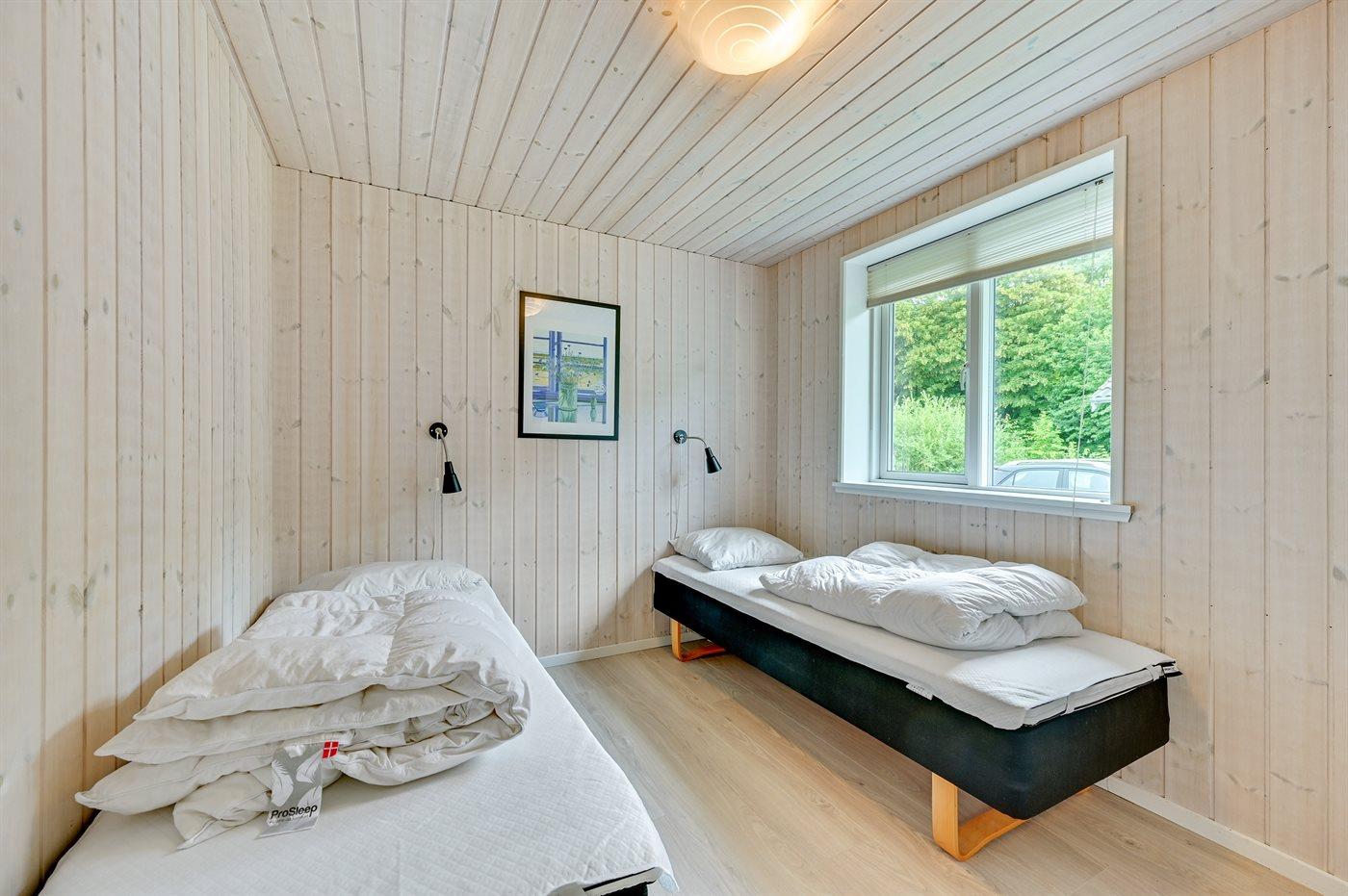 Der er i alt 7 soveværelser. Sovepladserne fordeler sig på: 6 sovepladser i dobbeltsenge. 8 sovepladser i enkeltsenge. 4 sovepladser på madrasser. 4 af disse sovepladser fordeler sig på 2 hemse. Derudover er der 2 stk. barnesenge.