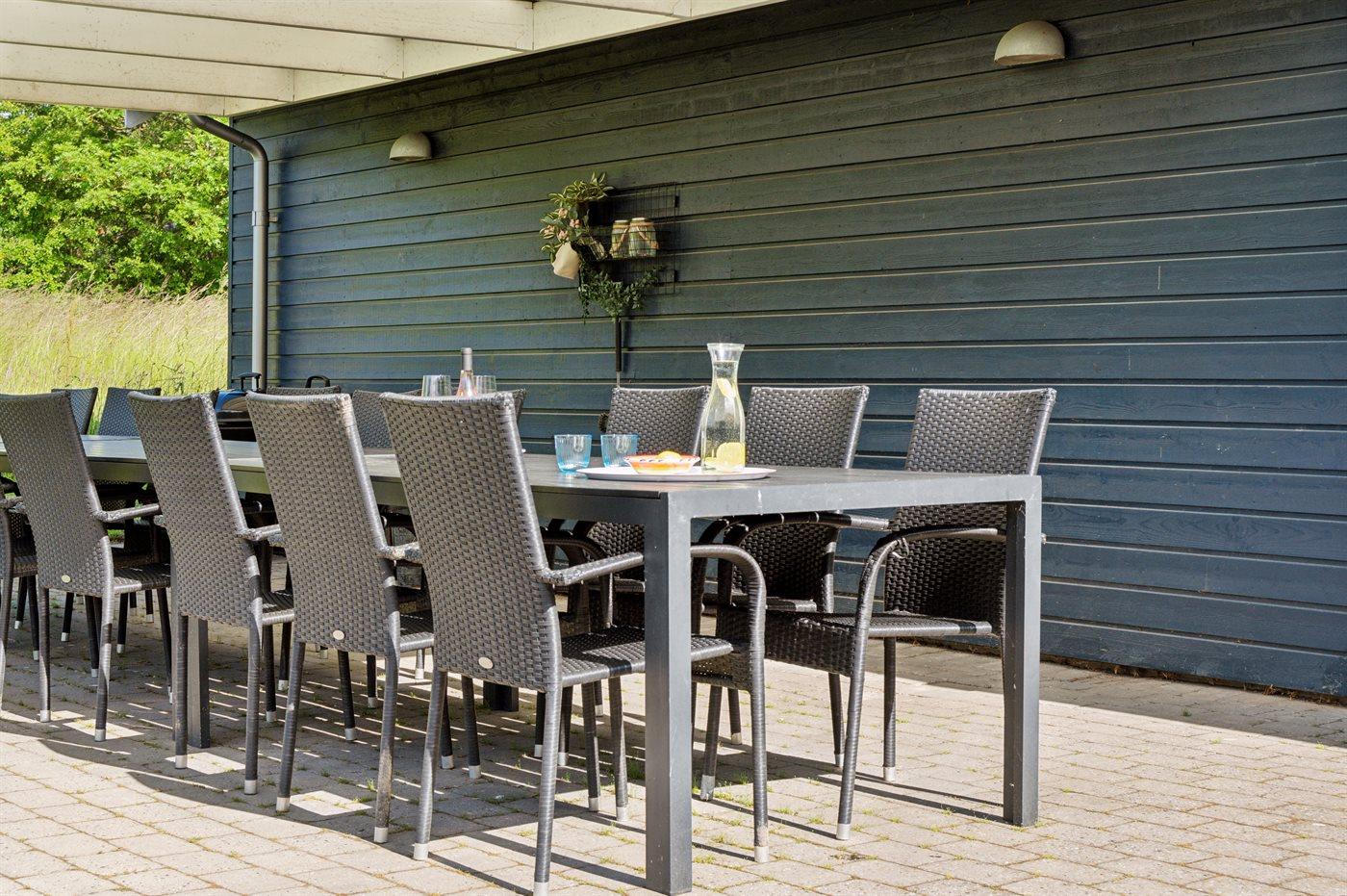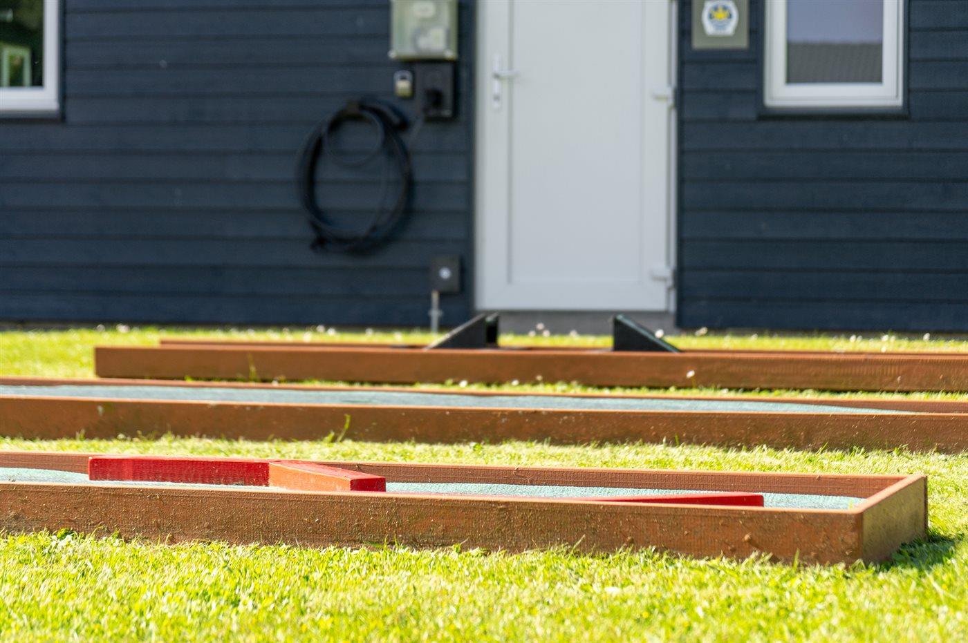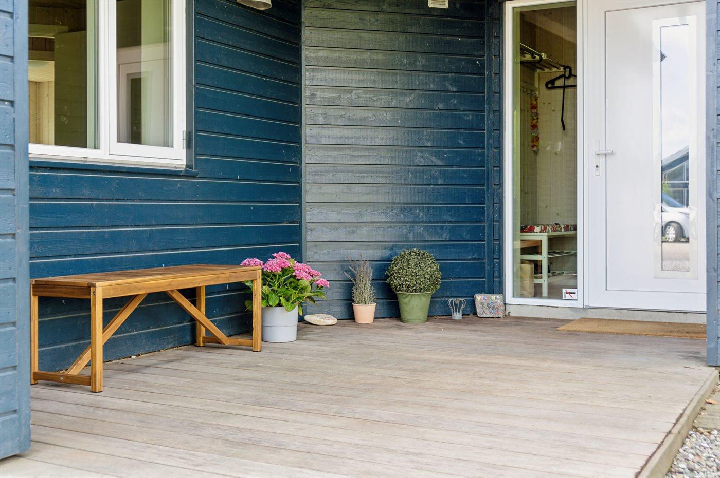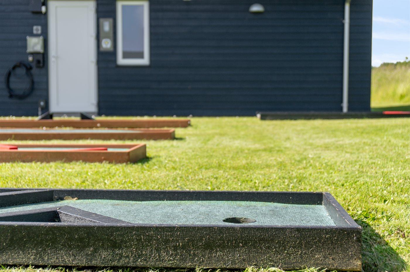 Ferieboligen er beliggende på en 854 m² stor havegrund. Der er 520 m til havet. Nærmeste forretning er beliggende i en afstand af 750 m. Til ferieboligen hører åbent terrasseareal. Desuden er der overdækket terrasse. Gynge. Sandkasse. Trampolin. Fodboldmål. Grill til rådighed. Der er installeret stik til opladning af elbil. Type 2 stik. CEE stik. Med 11 kW ladeeffekt. Parkering ved ferieboligen.