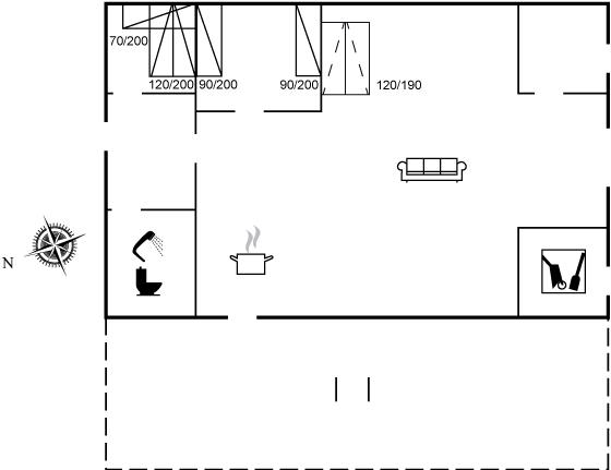 Køkkenet er udstyret med 1 køleskab. Der er 4 induktionskogeplader, varmluftovn, mikrobølgeovn samt opvaskemaskine.