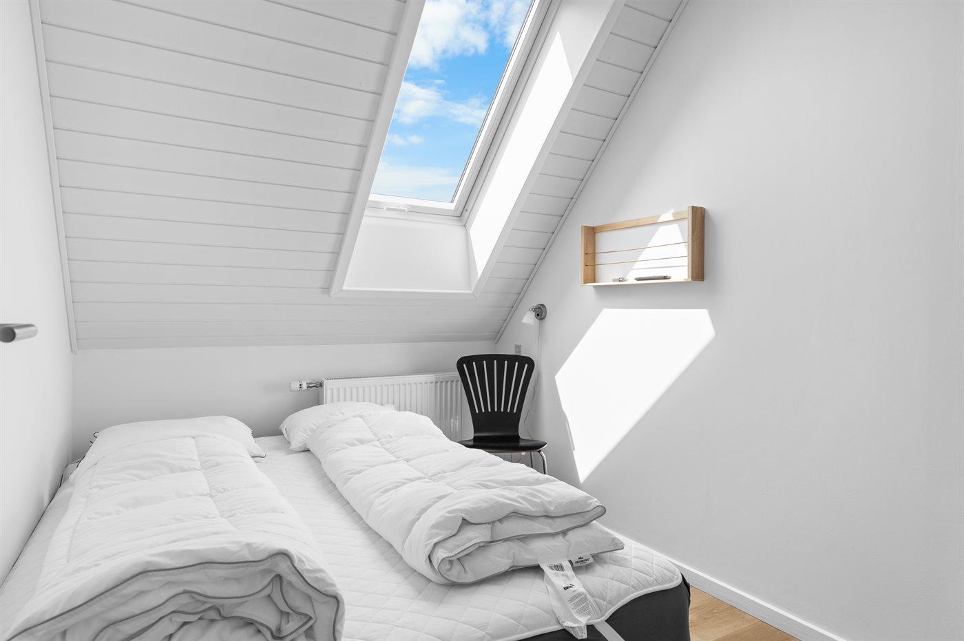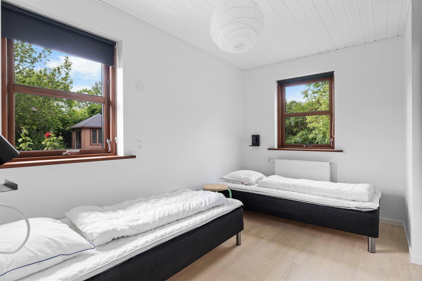 Der er i alt 4 soveværelser. Sovepladserne fordeler sig på: 6 sovepladser i dobbeltsenge. 2 sovepladser i enkeltsenge. Derudover er der 2 stk. barnesenge. Der er gulvvarme i 2 af soveværelserne.