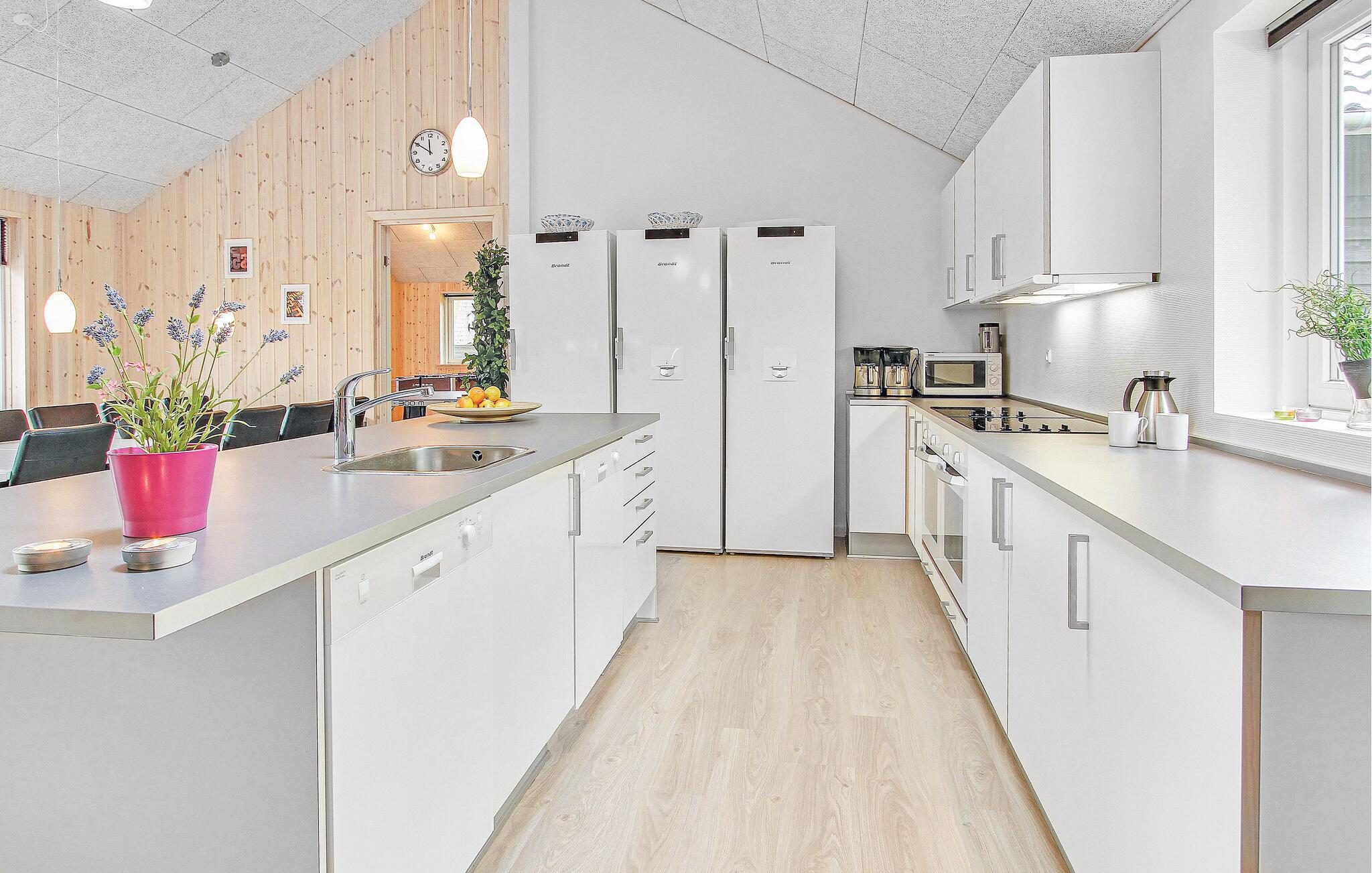 Et populært feriehus med otte gode soverum, to hemse og fire lækre badeværelser. Huset er udstyret med komfortable møbler og har alt det udstyr, der skal til for at I føler jer hjemme. Det indeholder et lækkert kombineret stue/køkken/alrum, som ligger midt i huset og automatisk bliver jeres samlingssted om madlavningen og hyggelige stunder foran brændeovnens knitrende ild. Aktivitetsrummet ligger ved siden af stuen og har masser af aktiviteter. I poolrummet kan I boltre jer i timevis i den skønne, forfriskende pool eller i det 4-personers spabad og slutte af i den velgørende sauna. På de skønne terrasser kan I sidde og slappe af og nyde ferien i fulde drag. På lune sommeraftener er det også skønt at tænde op i grillen og tilberede et lækkert feriemåltid. A´conto forbrug og slutrengøring betales kontant i huset sammen med de øvrige forbrugsomkostninger. Sengelinned, håndklæder, barneseng og –stol kan lejes mod betaling på det lokale kontor.