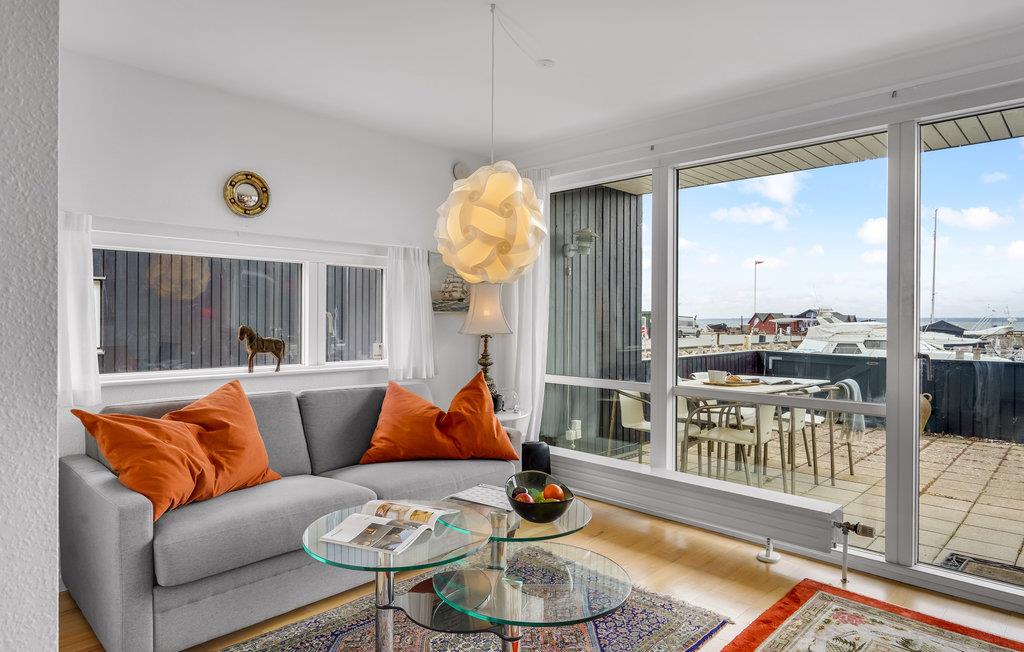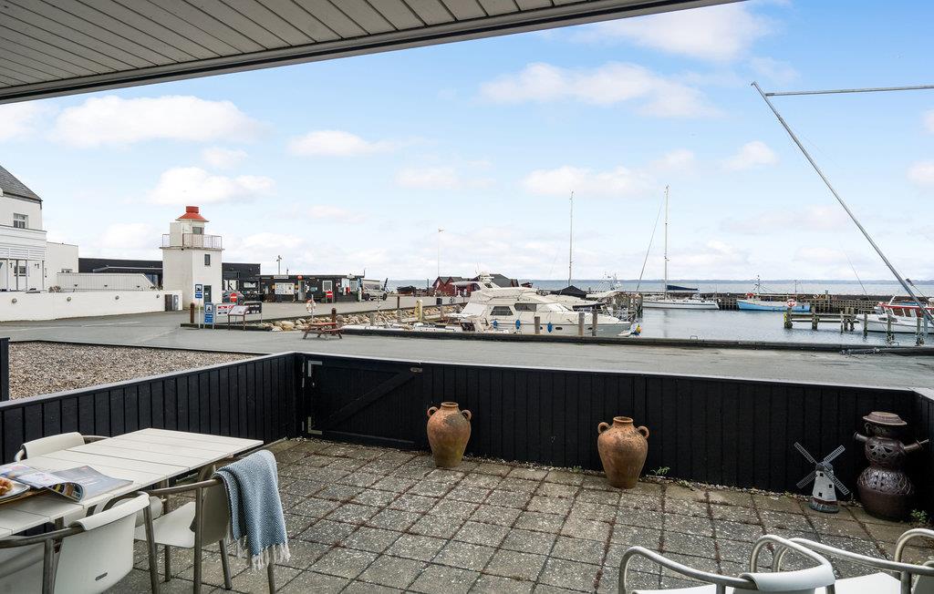 I får en fortrinlig beliggenhed i første række til vandet med dette fine, lille rækkehus, som er godt og moderne udstyret. Her kan I fylde dagene med hyggelige aktiviteter og hele tiden nyde udsigten til livet på havnen imens. Efter en lang dag på farten kan I sætte jer til rette rundt om spisebordet og senere læne jer tilbage i stuens bløde møbler med vandet som smuk kulisse. Begynd sommerdagene på terrassen med morgenmad, mens I lægger en plan for dagens aktiviteter. Når I vender hjem fra dagens eventyr, er det også hyggeligt at sidde her med grillretter og et glas vin.