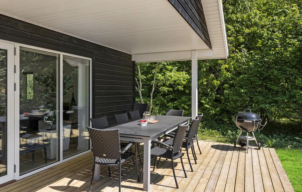 Huset ligger på en dejlig grund med terrasse og liggestole, hvor I kan nyde solen. Skulle det gode vejr holde hele dagen, kan I købe lidt lækkert med hjem til grillen og afslutte dagen med saftige bøffer og et godt glas vin under aftensolen. Nyd også den idylliske naturgrund med vild beplantning, højt græs og smukke blomster.