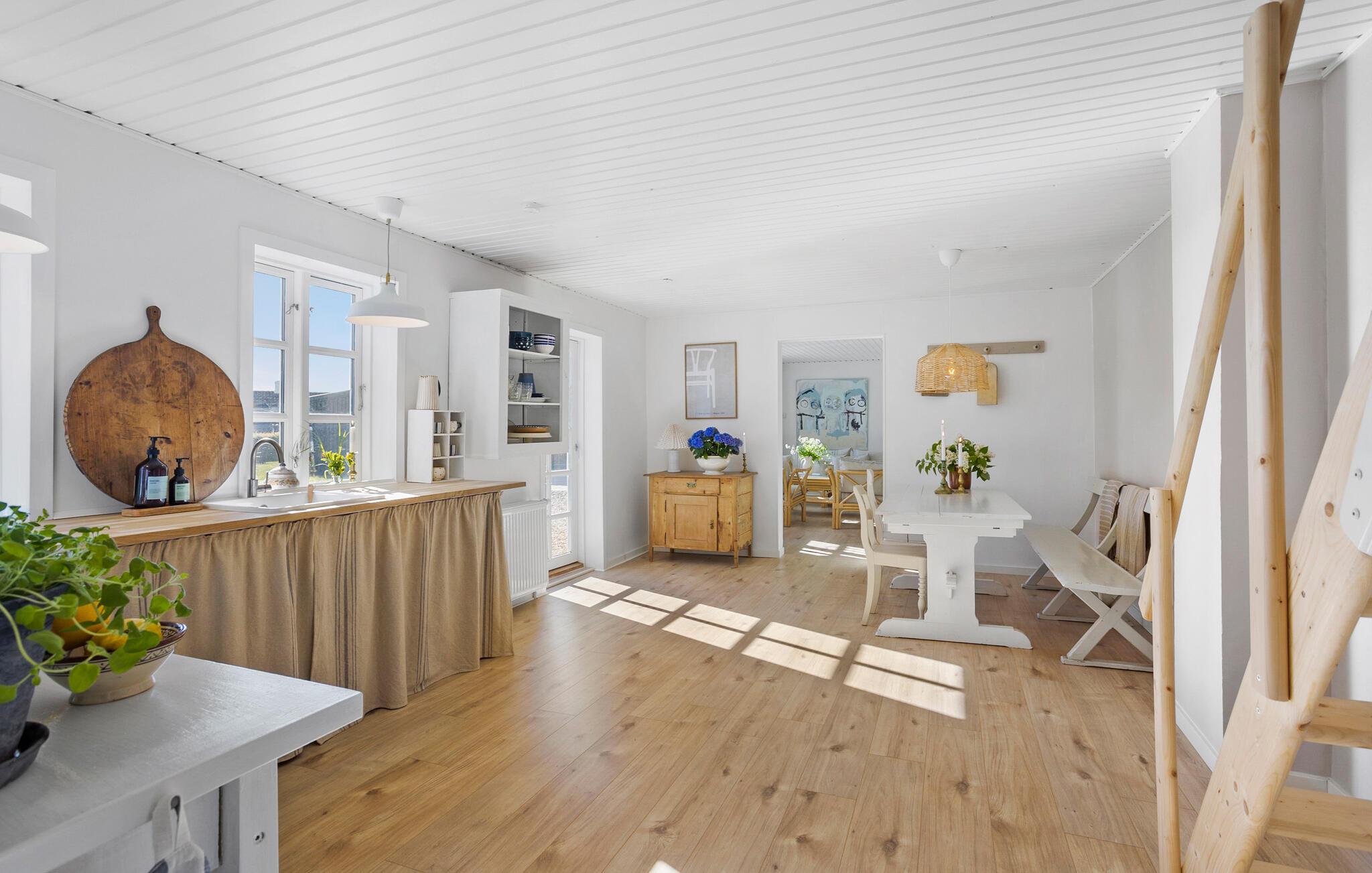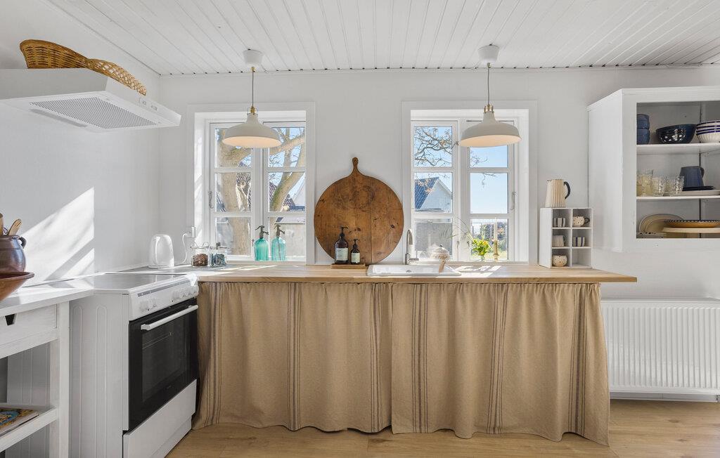 Velkommen til denne lyse og komfortable ferielejlighed, som vil fortrylle jer med sin enkle elegance og harmoniske stemning. Tilbered kulinariske delikatesser i det flot designede køkken og nyd måltider sammen ved det store spisebord. Glæd jer til afslappende læsetimer eller sociale spilleaftener i den hyggelige stue og Sæt hverdagen på pause med jeres nærmeste.