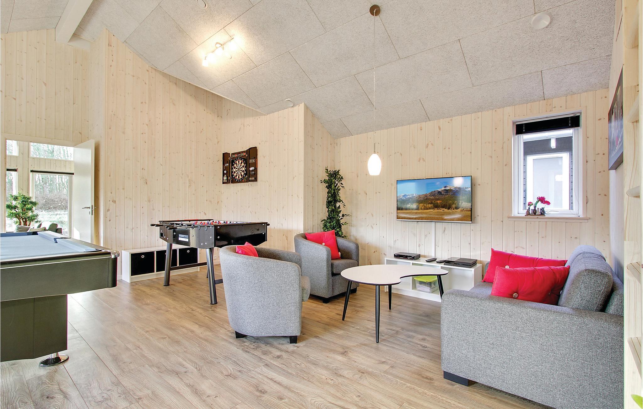 Lyst og moderne sommerhus nær Lohals Strand med pool, sauna, spabad og aktivitetsrum til en uforglemmelig ferie.
