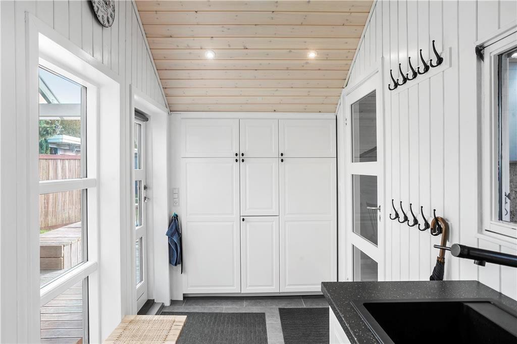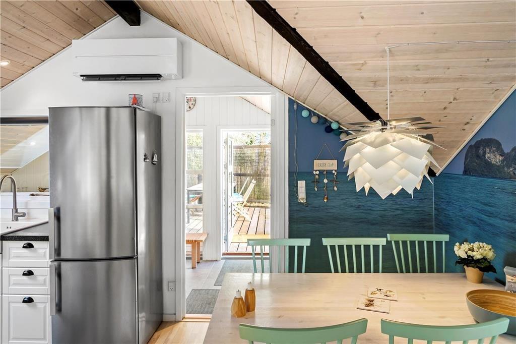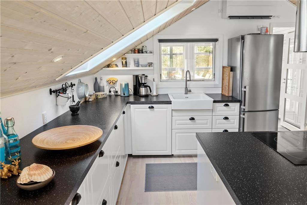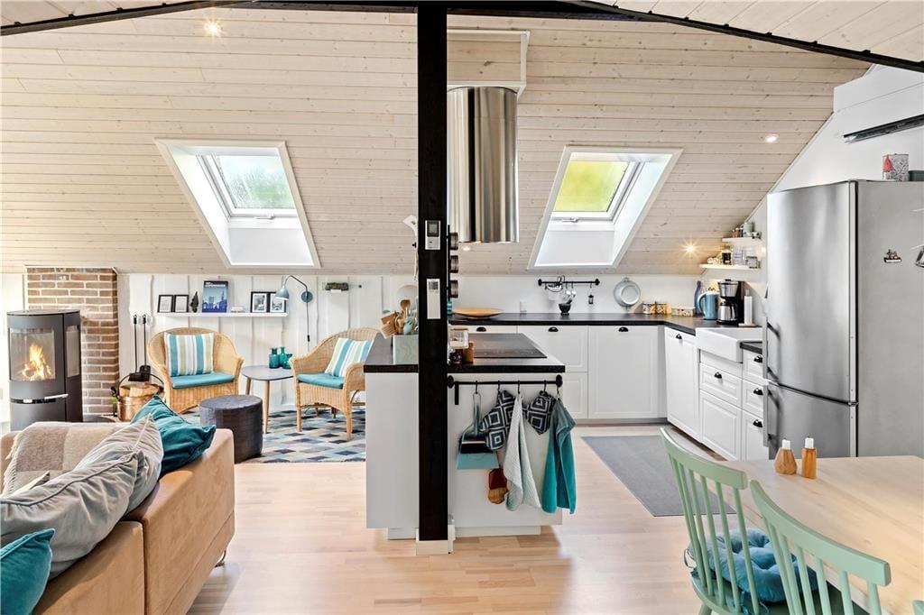Det skønne fritidshus indeholder 3 gode soveværelser hvor de 2 af dem har dobbeltseng og det sidste værelse en stor køjeseng, et badeværelse med WC og bruser og et lækkert køkken-alrum med spiseafdeling, sofaområde og pejsekrog, fra stuen af er der udgang til terrassen som går rundt om hele fritidshuset, endvidere byder fritidshuset på et lækkert bryggers med vaskemaskine og tørretumbler, samt udgang til den hyggelige og delvist overdækkede terrasse.
