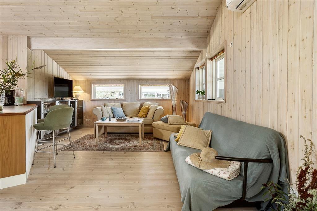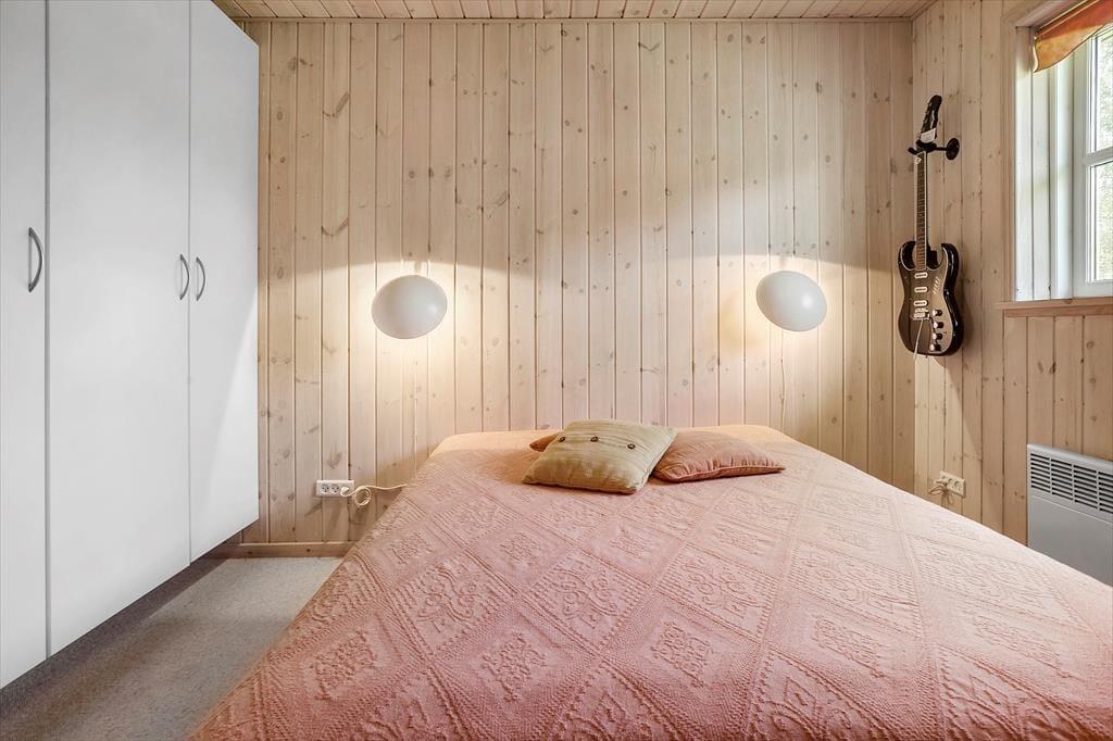 Fritidshuset indeholder: Entre, 3 gode soveværelser med dobbeltseng i 2 af værelserne og dobbeltsovesofa i 1 af værelserne. I huset er der 1 badeværelse med wc, bruser, indendørsspa og sauna. Derudover er der et stort lækkert køkken og spiseafdeling i forlængelse af køkkenet, stue med sofa område og brændeovn, samt udgang til den store overdækkede terrasse. Fra stuen er opgang til hemsen, hvor der er to sovemadrasser. Derudover er der et anneks til huset, hvor der er en dobbeltseng. Huset er lyst og lækkert og der er plads til en masse samvær og hygge.
