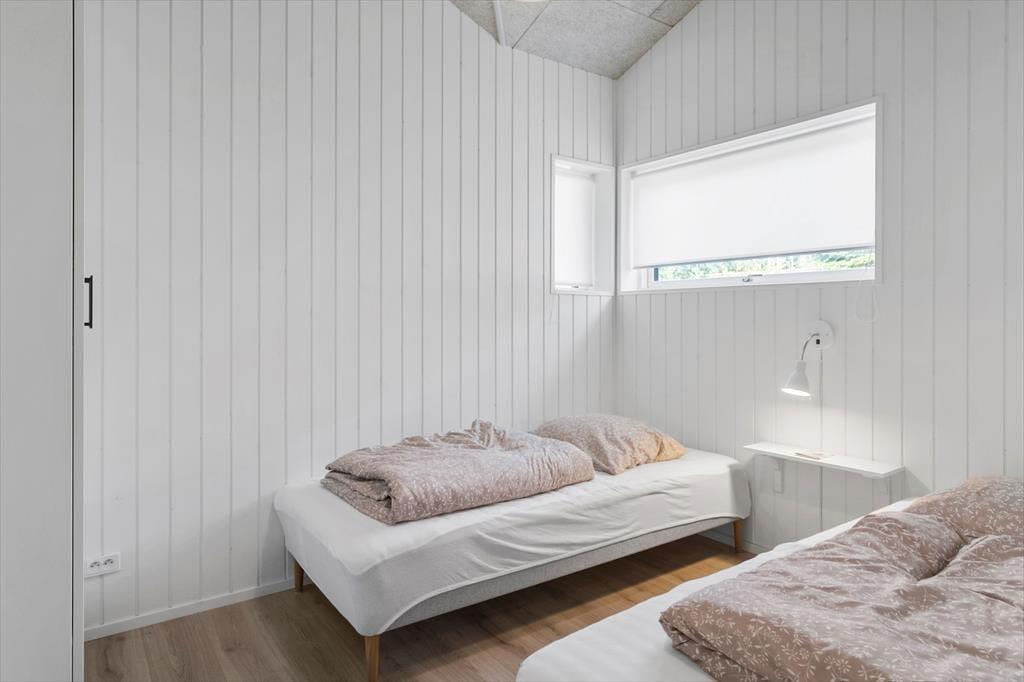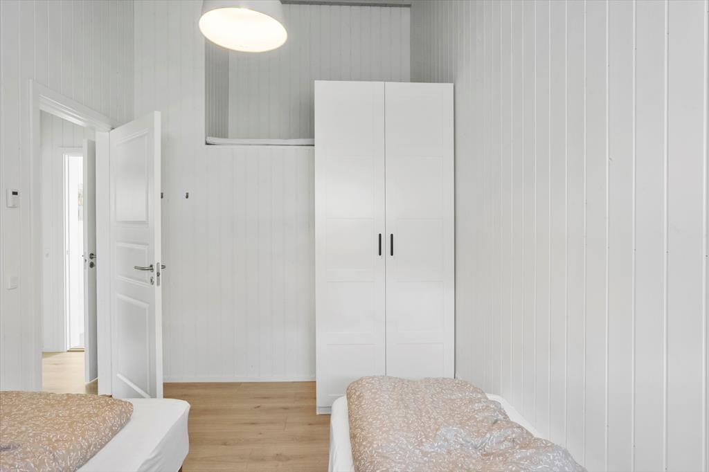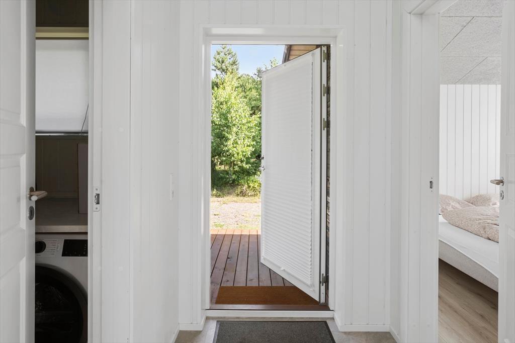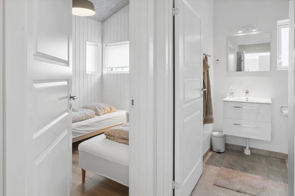 Sommerhuset byder på en indbydende entré og et praktisk bryggers med både vaskemaskine og tørretumbler. sommerhuset rummer fire rummelige soveværelser – to med dobbeltsenge og to med enkeltsenge – Huset har to moderne badeværelser, begge med toilet og bruseniche.