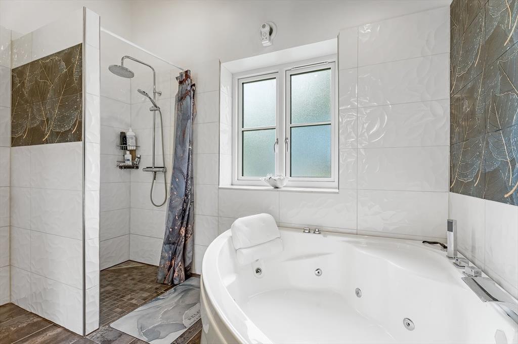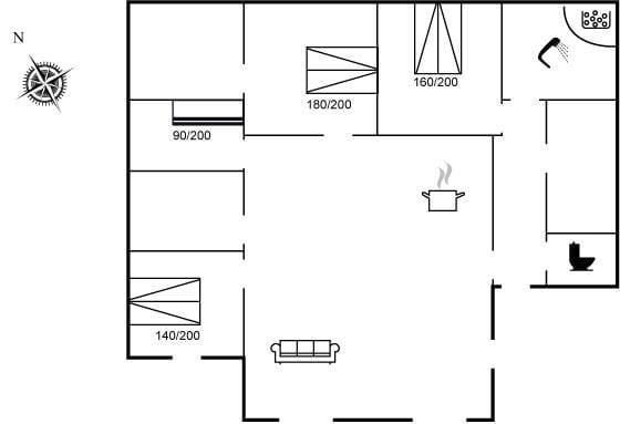 Huset tilbyder 4 soveværelser, med i alt plads til 6 personer og 2 børn (køjeseng), badeværelse, 1 gæstetoilet, 1 bryggers og huset store og fantastiske køkken-alrum, som indbyder til afslapning og hygge. I det ene hjørne af opholdsrummet, finder man husets moderne køkken i forlængelse af spiseafdelingen, mens sofagruppen står klar til spil og afslapning i den anden side. Ydermere tilbyder stuen på en stor og flot stenpejs samt udgang til den skønne terrasse og haven.