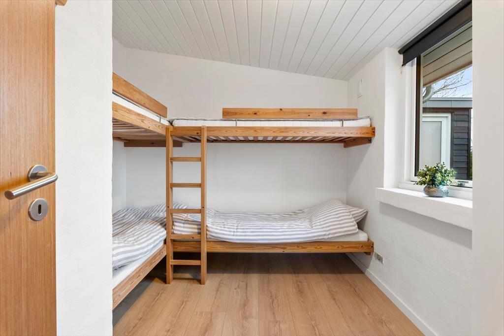 Indenfor mødes du af en lys, moderne og indbydende indretning, hvor rummene føles åbne og lette, og hvor dagslyset strømmer ind og fremhæver den afslappede feriestemning. Stuen er husets naturlige samlingspunkt, og her er det oplagt at slå sig ned med en kop kaffe, mens blikket glider ud over Limfjordens skiftende farver. Panoramaudsigten giver en særlig ro, som gør det let at koble helt af fra hverdagens tempo. Køkken og opholdsrum ligger i åben forbindelse, så samtalerne kan flyde frit, uanset om der bliver dækket op til fælles måltider eller spillet brætspil ved spisebordet. Når dagen går på hæld, kan du trække dig tilbage og nyde stilheden, der kun brydes af vindens susen og de dæmpede lyde fra naturen omkring huset.