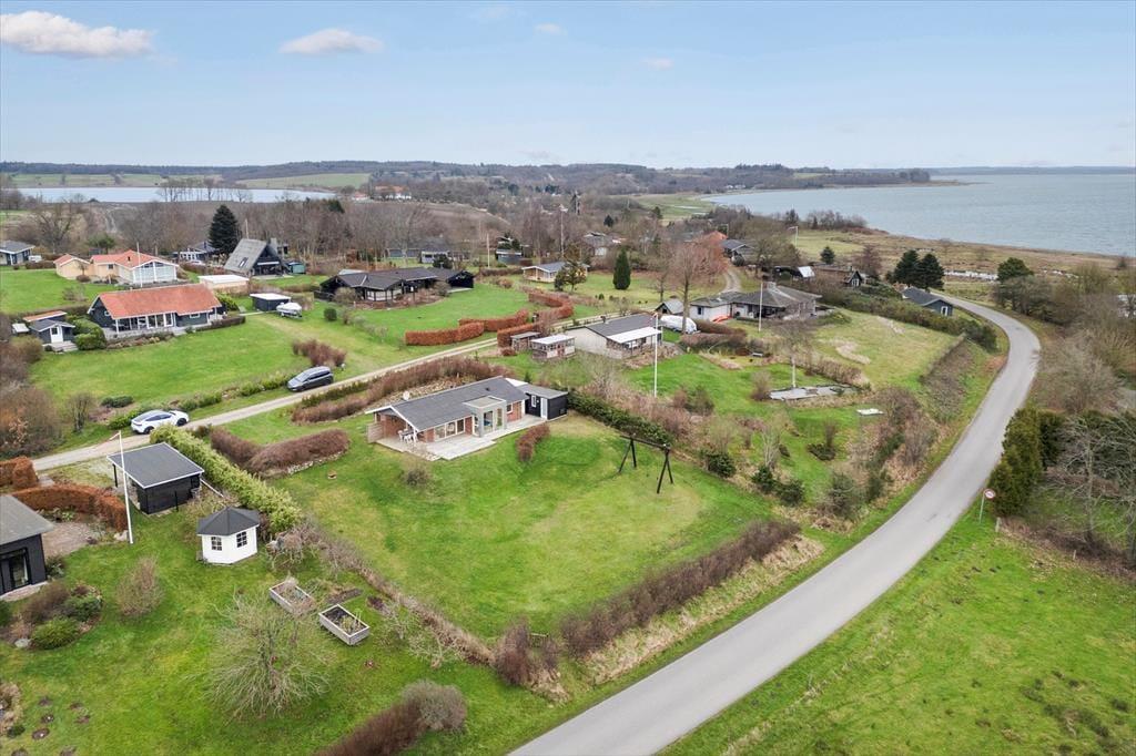 Sommerhusets terrasse og have indbyder til lange, dovne feriedage under åben himmel. Her kan du starte morgenen med morgenkaffen i solen, mens du nyder fjordudsigten og den friske luft, eller slutte dagen med et godt måltid, når solen langsomt går ned over vandet. Terrassen giver rig mulighed for både afslapning og samvær, og haven er et dejligt sted at lade børnene lege, mens de voksne læner sig tilbage og nyder feriestemningen. Uanset om du foretrækker solrige eftermiddage med en bog i hånden eller hyggelige aftener med snak og latter, danner uderummet en naturlig forlængelse af sommerhuset. Fjorden ligger så tæt på, at udsigten næsten bliver en del af terrassen, og det giver en helt særlig fornemmelse af nærhed til naturen.
