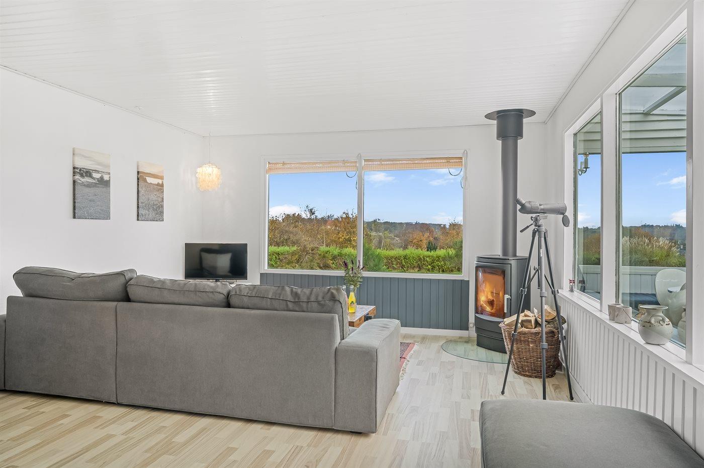 Ferieboligen er beliggende på en 1514 m² stor naturgrund. Grunden er indhegnet. Der er 250 m til fjorden. Nærmeste forretning er beliggende i en afstand af 3900 m. Der er en golfbane i en afstand af 4000 m. Til ferieboligen hører åbent terrasseareal. Grill til rådighed. Parkering ved ferieboligen.