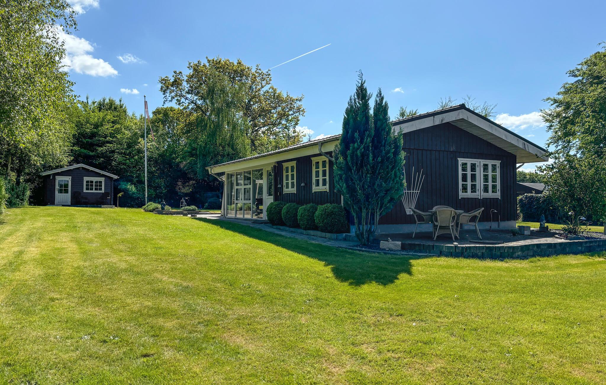 Hyggeligt sommerhus nær fjorden med stor have og bålplads for afslappende feriedage.