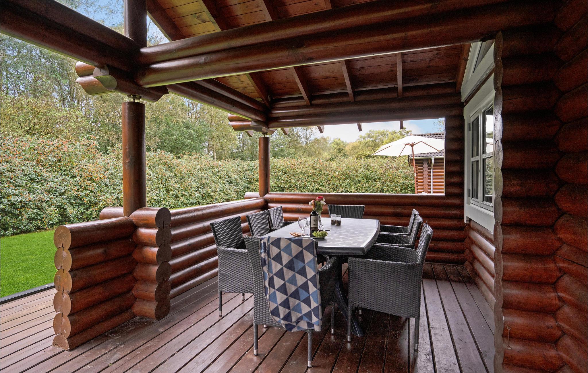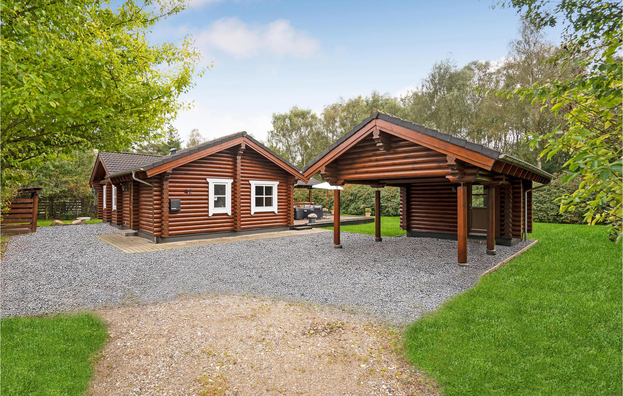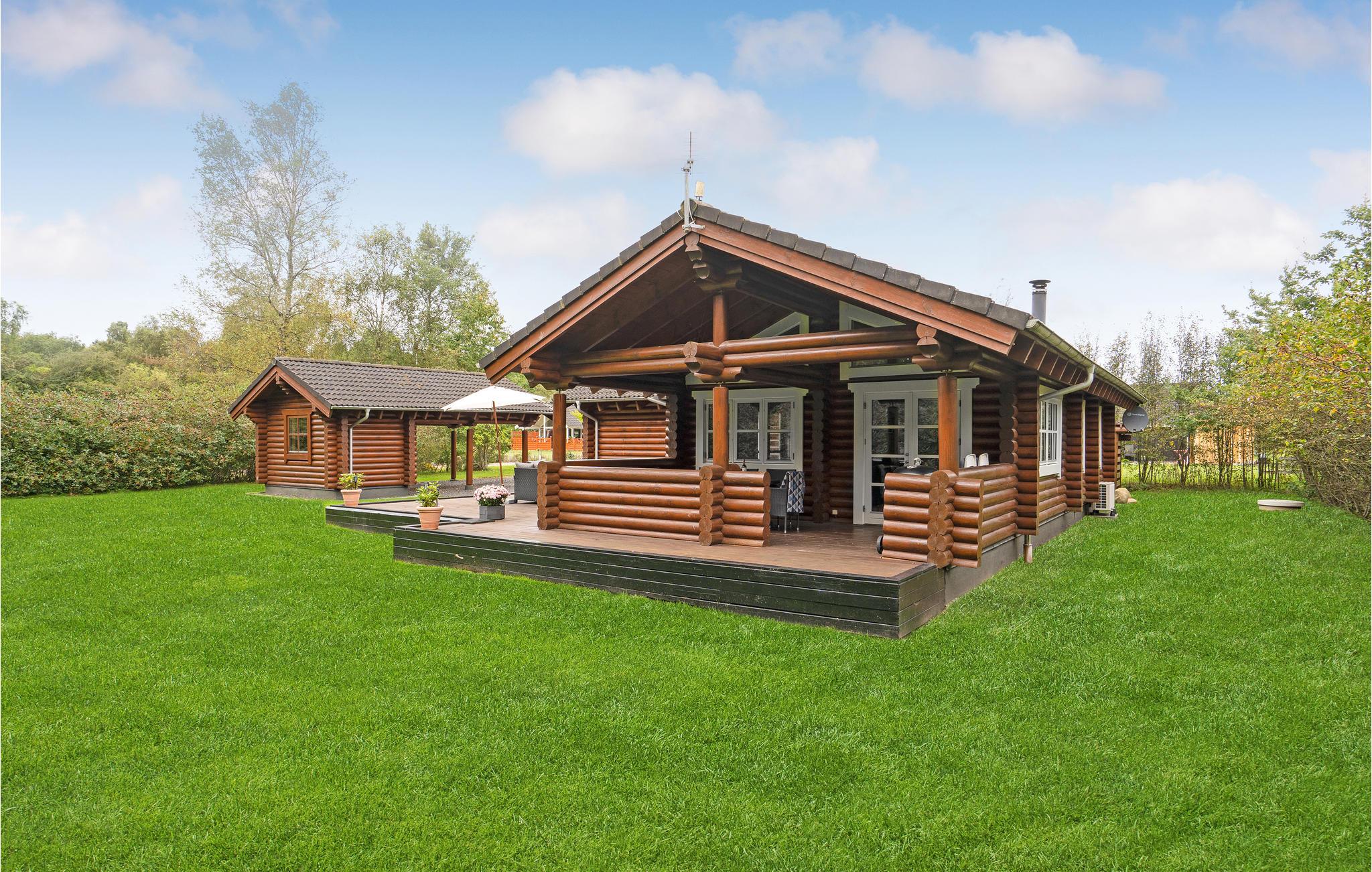 Flot bjælkehus med spabad og elbilopladning