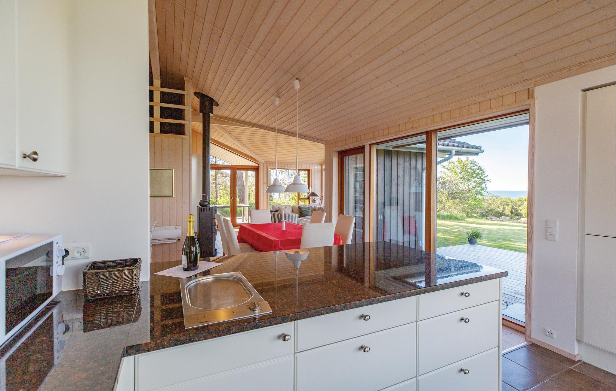 Feriehus i 1. række, beliggende på Lumsås Nordstrand ud mod Kattegat, hvor lyset på himlen har sin helt egen karakter. I kan gå via trappe direkte fra huset og ned på stranden, her er der rig mulighed for at fange aftensmaden, tage en frisk dukkert i vandet, eller blot en gåtur langs stranden for at blive blæst igennem og få fornyet energi. Køkkenet er et kapitel for sig selv, Hanstholm snedkerkøkken med bl.a. stor gas cooktop, teppanyaki stegeplade samt ovn og dampovn fra Gaggenau. Her kan der laves mange gourmetmiddage med direkte kik til Kattegat. Og udenfor er der en lækker Jensen grill. Middagen kan indtages på den store terrasse, mens udsigten nydes. Køkkenet er i åben kombination med stue/spisestue, og også herfra, er der fri vandudsigt og unikt lys grundet de store vinduespartier mod havet.