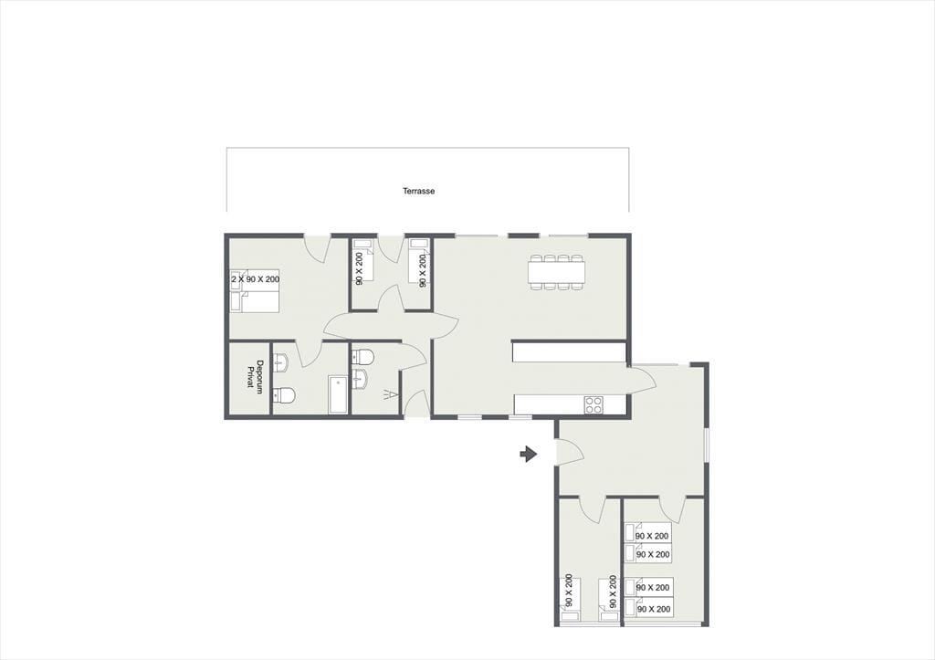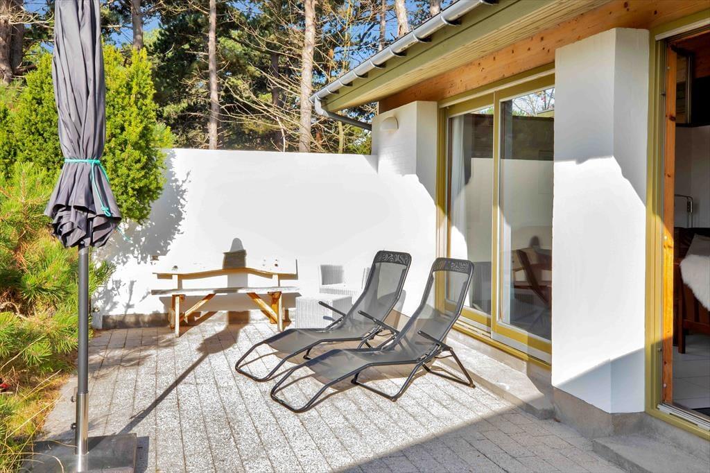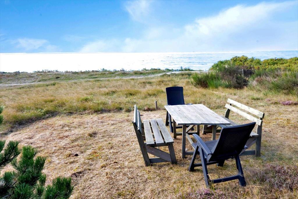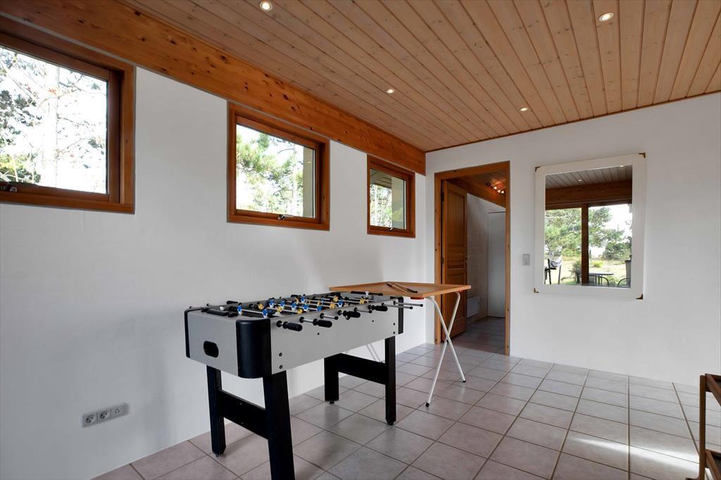 I den dejlige stue kan du slappe af og nyde den skønne udsigt mod havet. Der er stor tv-pakke bl.a med dansk og tysk tv. Stort åbent køkken med opvaskemaskine og en god spise afdeling. Der er badeværelse med badekar og brus samt gæstetoilet. Med husets fire store soveværelser er her bestemt god plads også til flere familier. I det tilhørende aktivitetsrum kan I både spille bordfodbold og bob. Fra stuen er der udgang til en skøn, stor terrasse, opdelt i en særdeles hyggelig overdækket og flere åbne afdelinger. Her er det oplagt at nyde solen fra morgen til aften, mens du fordyber dig i en spændende bog eller nyder et godt glas vin. Der tilhører endvidere et lille orangeri, men husk også at tage dig et bad under den dejlige udebruser efter en skøn dag på stranden.