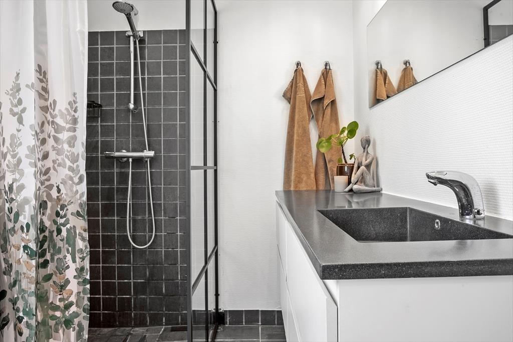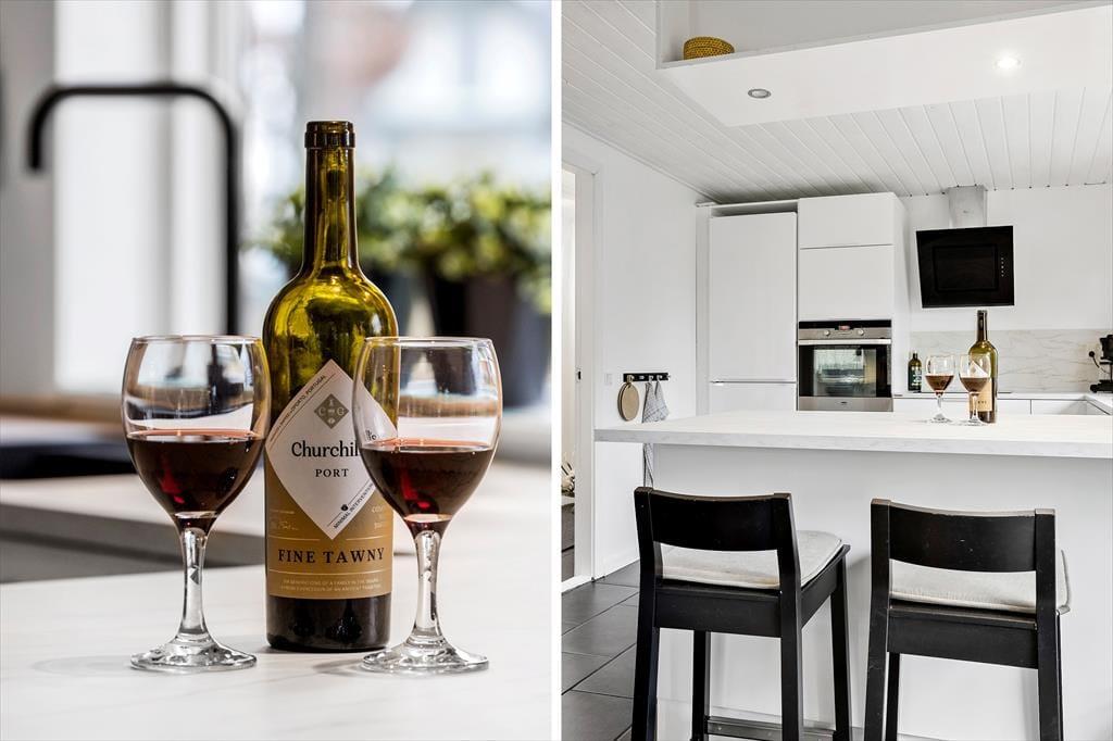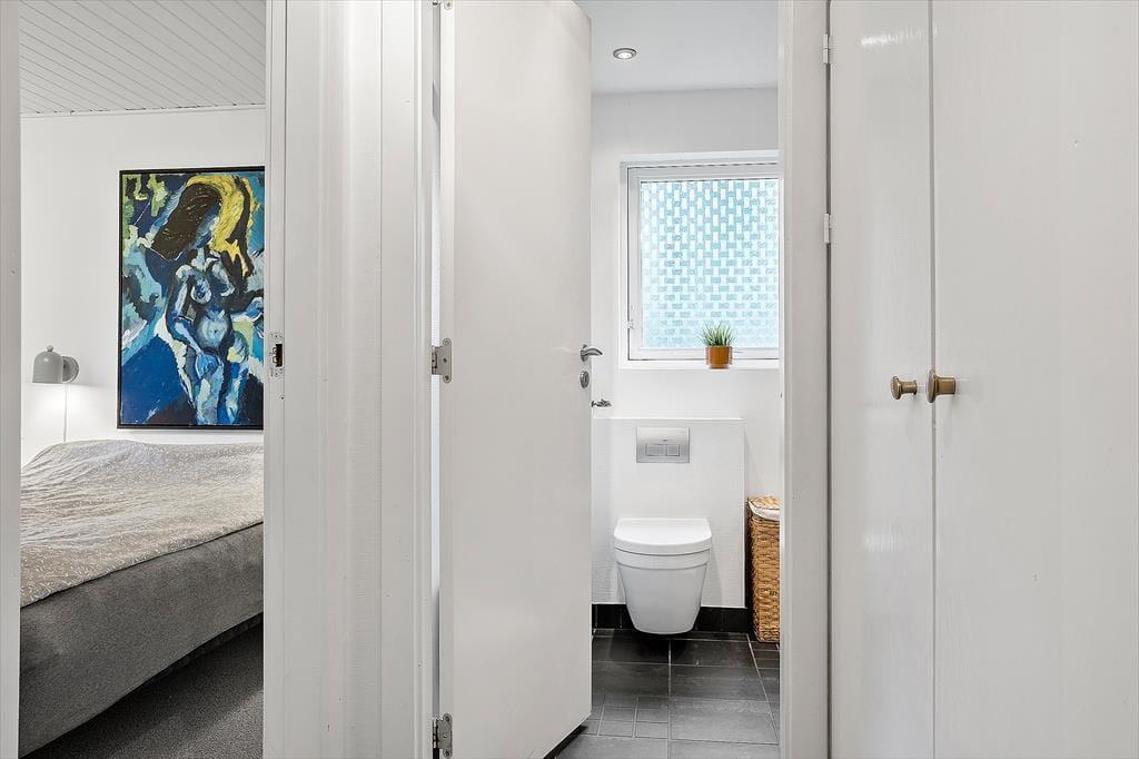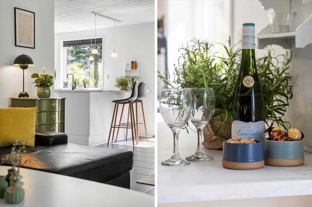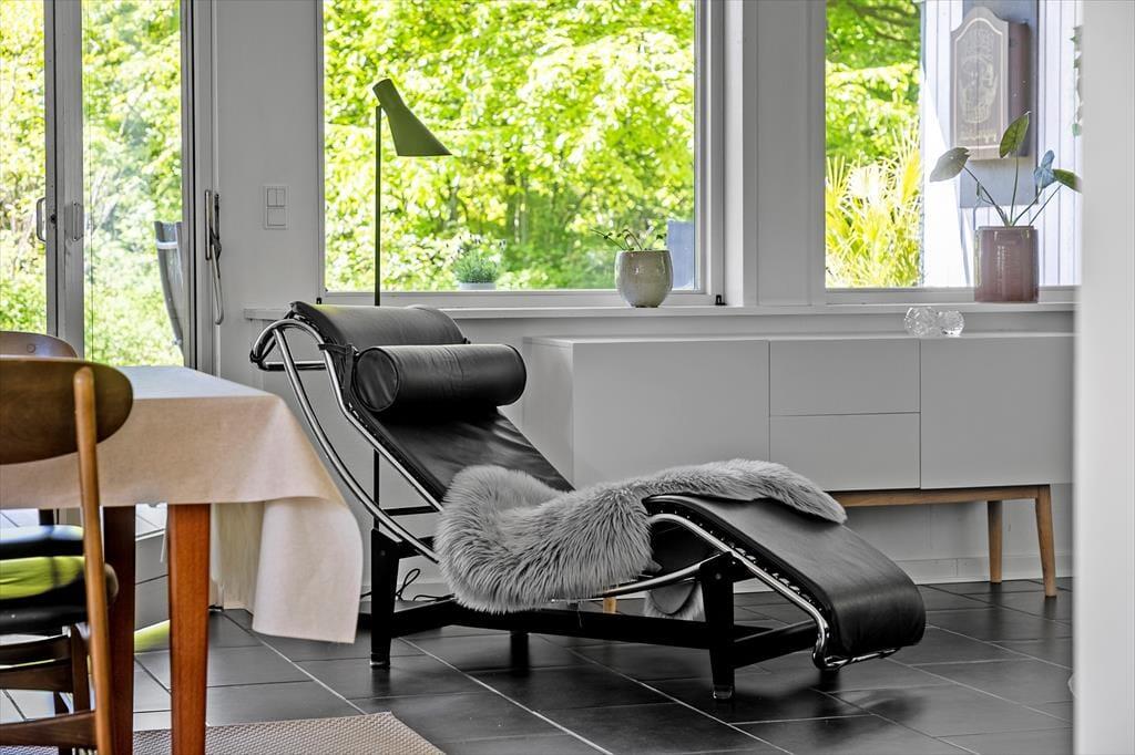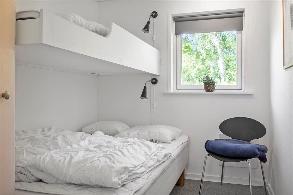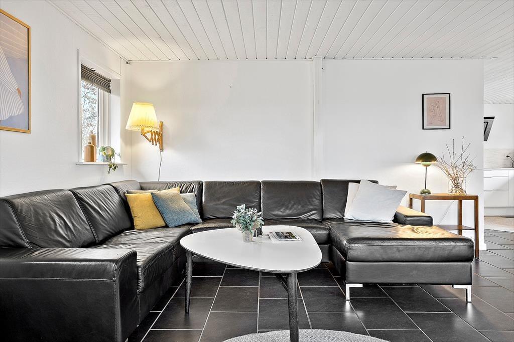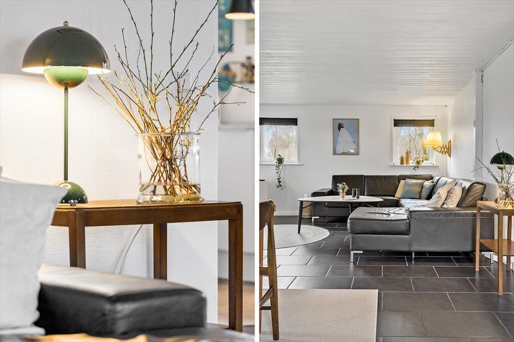 Indenfor mødes du af en hyggelig og afslappet stemning. Den åbne opholdsstue forener køkken, spiseområde og sofaafdeling, så her kan familien samles om alt fra madlavning til aftenhygge. Brændeovnen skaber en lun atmosfære på de køligere dage, og de store vinduer lader dagslyset strømme ind i rummet. Huset har flere soveværelser, så der er plads til både familie og venner, og badet er funktionelt og velindrettet.