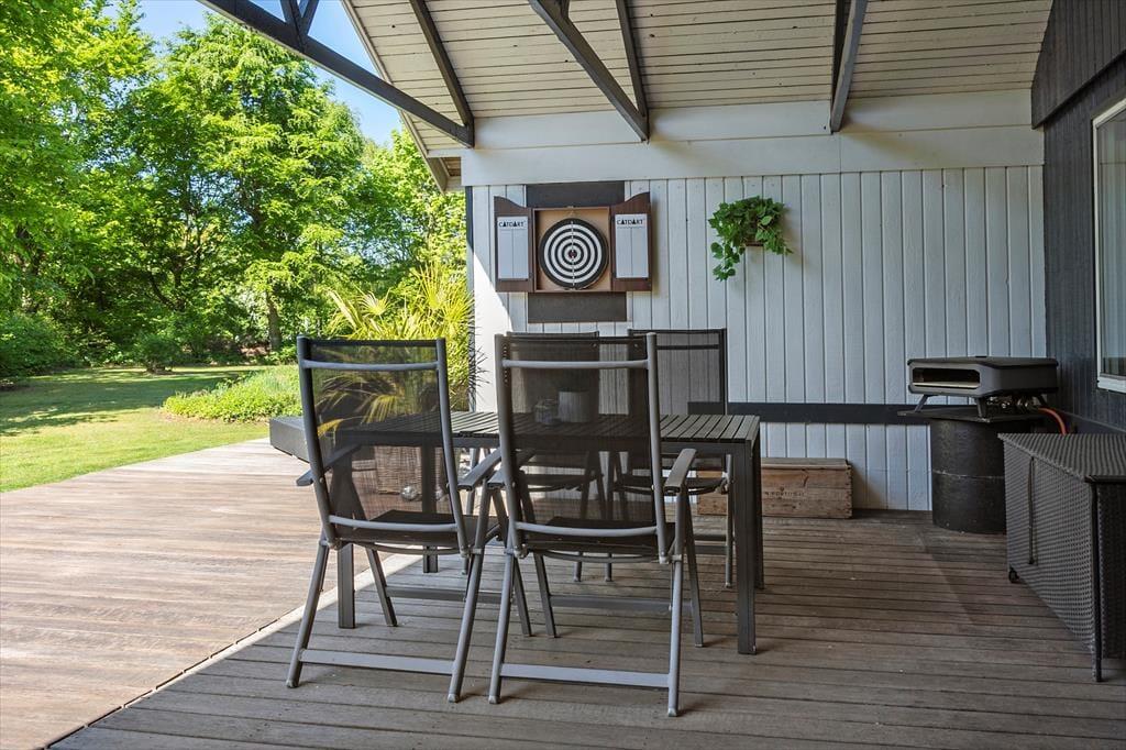 Udelivet bliver en sand fornøjelse her, hvor den store terrasse indbyder til lange, afslappende dage i det fri. Nyd morgenkaffen i en liggestol, dæk op til middag under åben himmel, og lad aftenhyggen tage form omkring pizzaovnen, hvor du kan bage sprøde, hjemmelavede pizzaer med familien. Den lukkede have giver rig mulighed for leg og boldspil, mens de naturskønne omgivelser tilføjer en ekstra dimension af fred og ro.