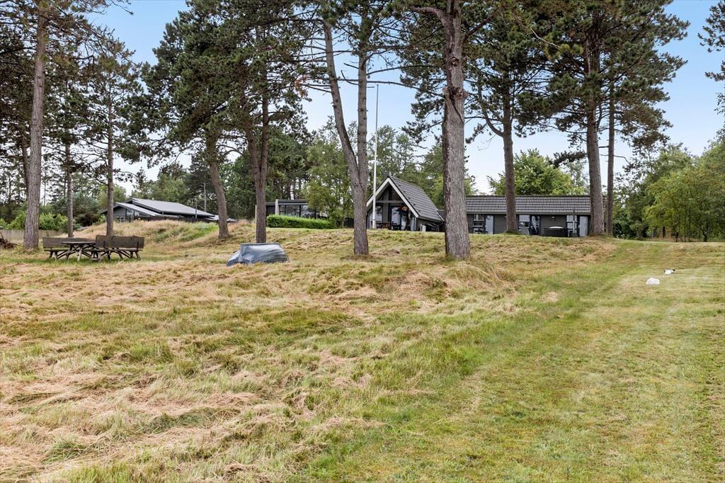 Sommerhusets naturgrund er med sine 5968 m2 imponerende stor, og den fører lige ned til vandet, så du kommer til at holde ferie i det skønneste landskab og kan følge med i, hvordan fjorden ændrer udseende i takt med vejrudsigten og tidspunktet på dagen. Start dagen med en dukkert – og hvis du ikke vil blive på stranden for at tørre i solen, kan du være tilbage ved huset, inden morgenkaffen er klar. Fra både soveværelserne, udestuen og køkkenet har du direkte adgang til det dejlige terrassemiljø, der breder sig rundt om huset. Med andre ord kan du smutte ud, så snart vejrguderne smiler, og der er flere skønne opholdspladser at vælge imellem, hvis du vil sætte dig med avisen eller spise frokost med dine kære. Om aftenen har I mulighed for at grille, og hvis I vil afslutte dagen på helt tilbagelænet vis, kan I gå i vildmarksbad, mens stjernerne begynde at kigge frem på himlen.