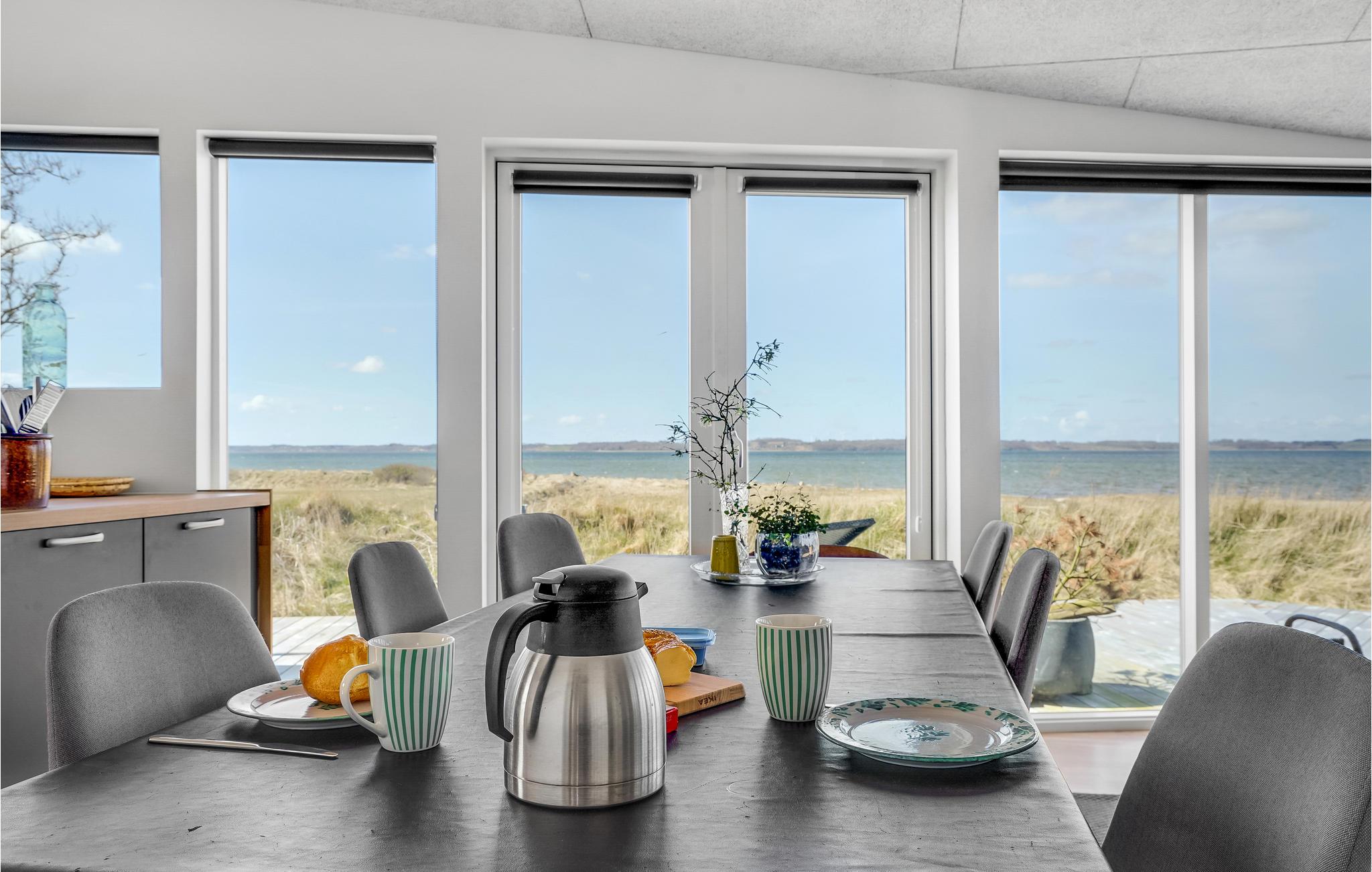 Nyd en ugenert ferie i et moderne sommerhus med fantastisk panoramaudsigt over havet ved Lundø Strand.
