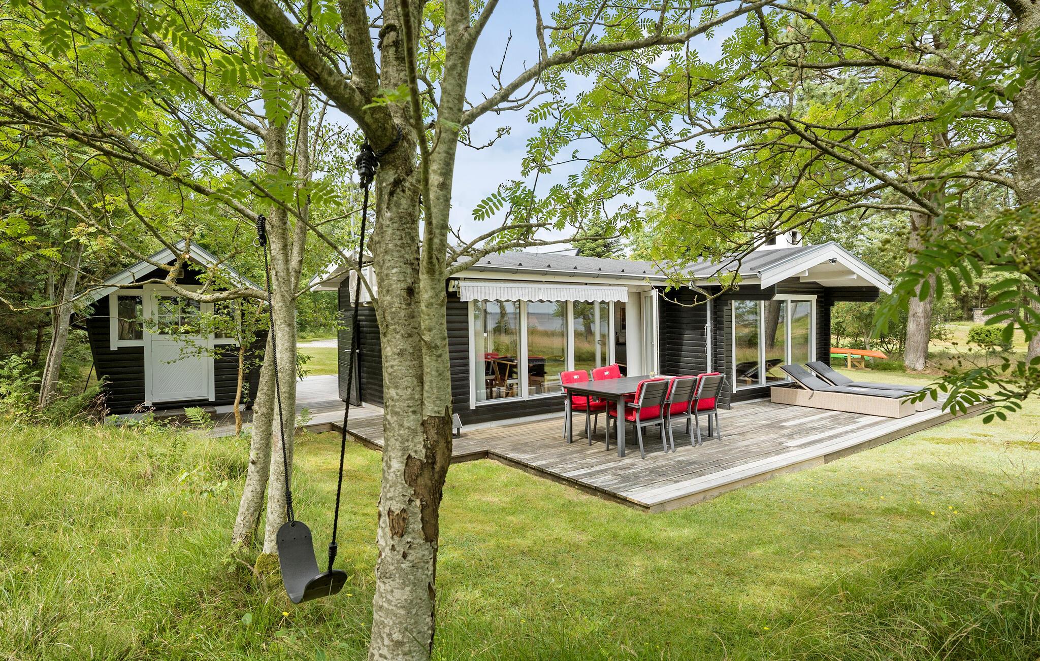 På de varme dage kan I trække ud på træterrassen, der omkranser huset, og nyde solen lige fra morgenstunden. Nyd dagens måltider i det fri, hold øje med børnene, der leger i haven og begiv jer gennem haven ned til stranden for en frisk dukkert, når end det måtte friste.