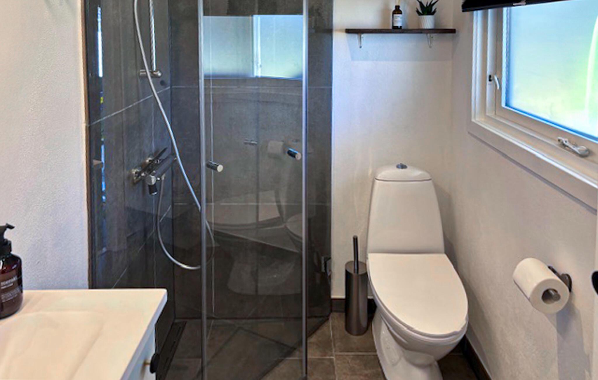 Badeværelse (nr. 1) - WC. Varmt og koldt vand. Bruser