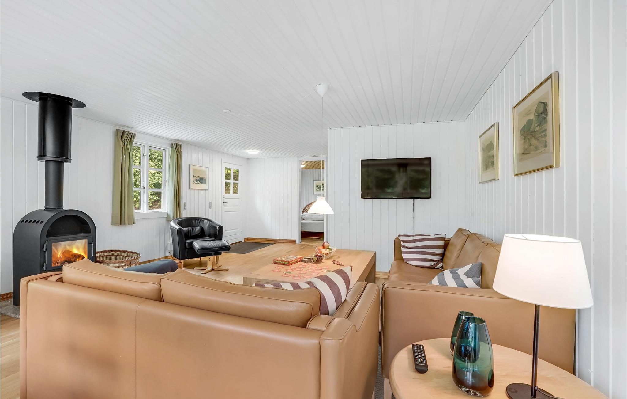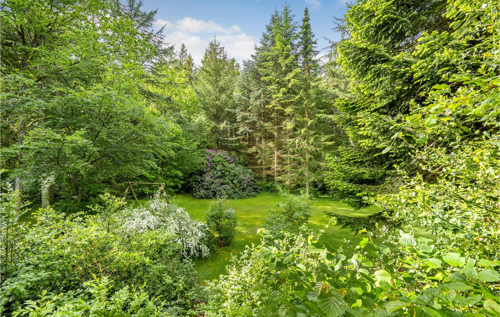 Det rødmalede hus er hyggeligt og enkelt indrettet med plads til seks personer og familiens hund. Den rare atmosfære forstærkes af en brændeovn, træpaneler og de store vinduespartier, som lukker masser af lys ind. Året rundt er haven en fornøjelse, men særligt i sommerhalvåret, hvor træerne bliver tætte af blade og omkranser grunden, så den kommer til at fremstå som jeres egen lille park.