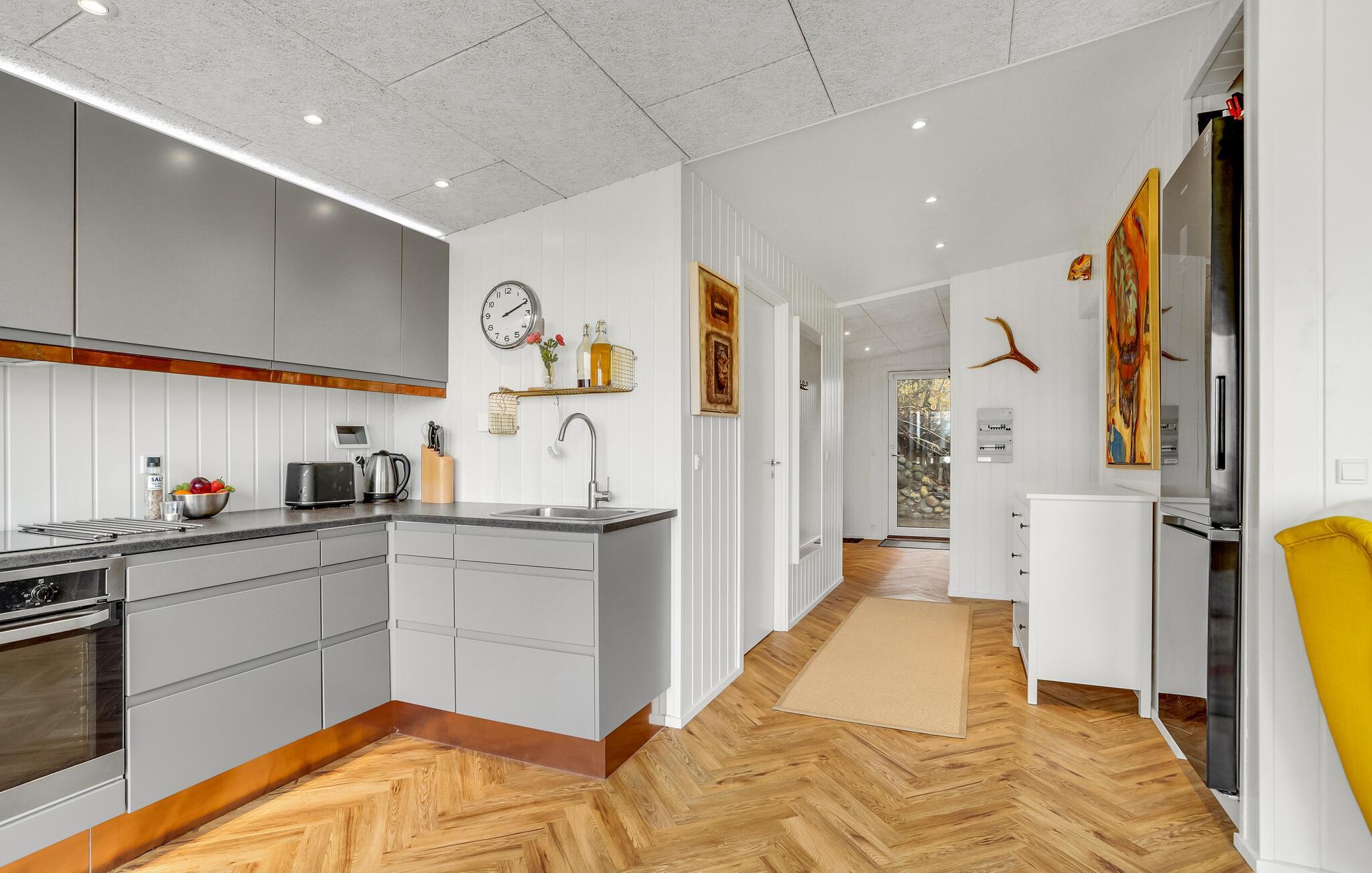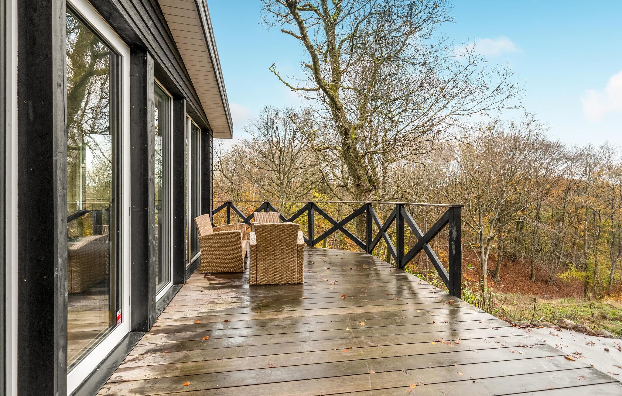 Velkommen til et herligt feriehjem i smukke Lundby Krat. Her er der lagt op til dejlige dage med friske gåture, oplevelser i naturen og en skøn base i dette dejlige hus. I kan se frem til masser af indendørshygge i en flot dekoreret bolig samt wellness i det fri og saftevand i haven på jeres egen grund. Huset har store vinduer ud mod det grønne, så I føler hele tiden, at I har naturen tæt på. Dæk op til dagens måltider på terrassen og nyd tonerne af fuglesang, mens I spiser. Efter en lang dag, hvor fødderne måske er ømme, er det ren luksus at læne sig tilbage i vildmarksbadet.