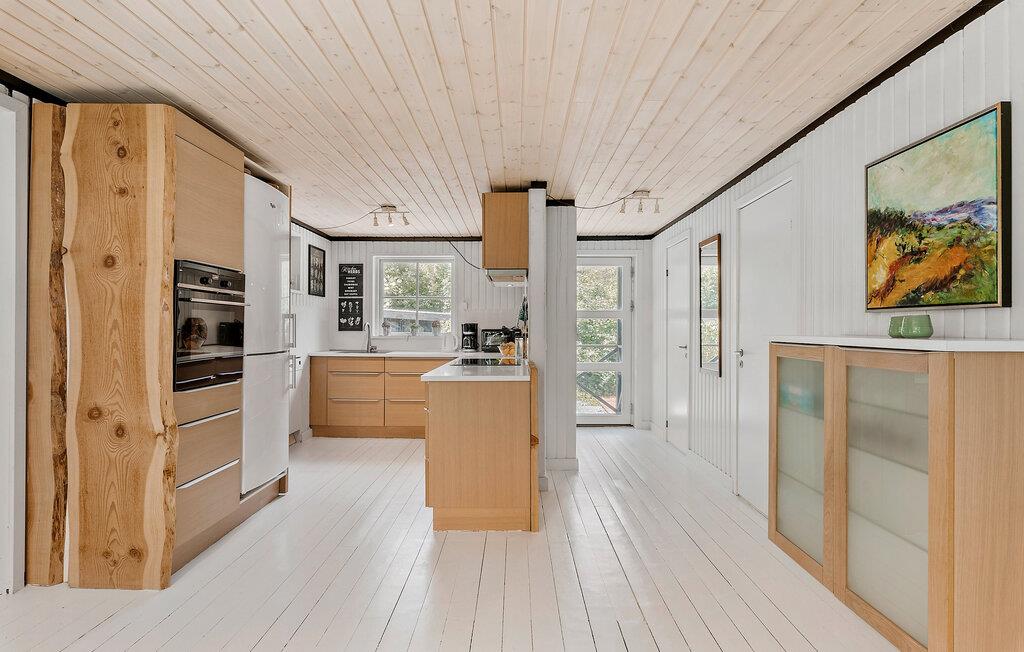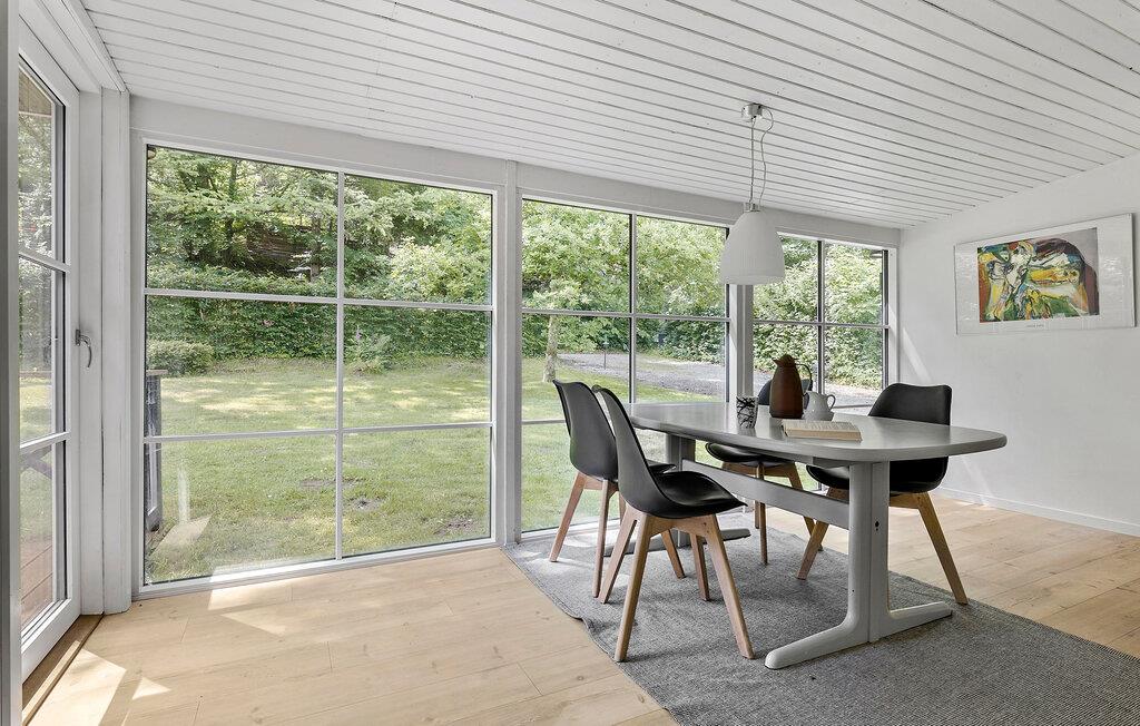 Der er fuglefløjt og store grønne trækroner rundt om dette hyggelige feriehus i Lundby Krat, som ligger lige syd for Aalborg. Her får I den perfekte mulighed for at slappe af i naturen, mens I nyder nærheden til byens mange oplevelser. Huset emmer af enkel elegance og moderne komfort. Træd ind i den lyse stue og læn jer tilbage i sofaen, mens I hører ilden buldrer i brændeovnen. Glæd jer til at tage hul på sommerdagene med en kop kaffe på den solrige terrasse og kigge ud på haven, som er en skøn, grøn oase.