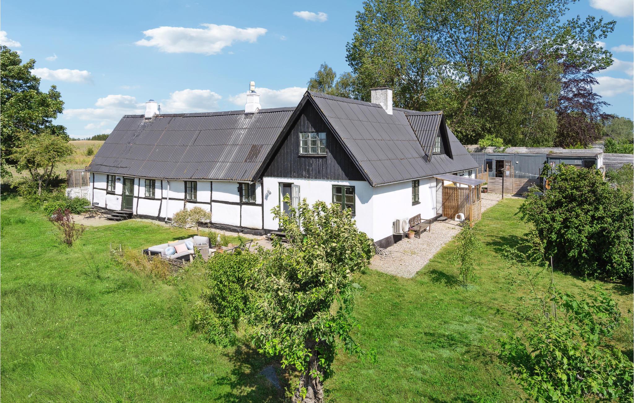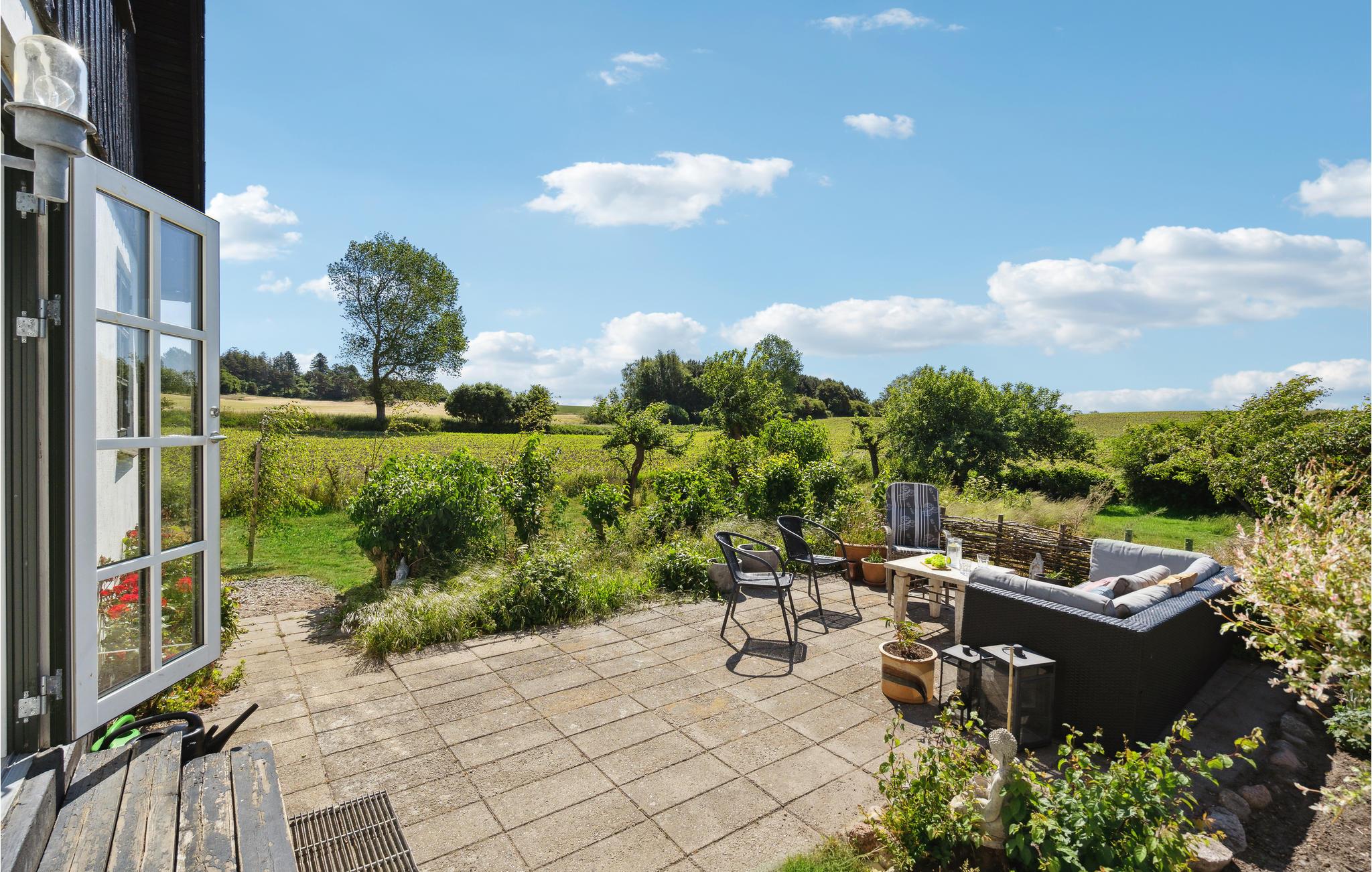 Alt ånder fred og ro på denne skønne landejendom, som ligger omgivet af mark og enge, og så er der god plads til, at I kan tage mange af sted sammen. Det fine gårdhus fra 1800-tallet er fordelt over to etager og består af nogle dejlige åbne rum med fine moderne detaljer, der mikser sig med det historiske. I det store spisekøkken er der gode rammer til, at flere kan være i gang samtidig, og at I kan samles rundt om det store bord. Husets størrelse gør det nemt, at alle kan hygge sig med hver deres aktiviteter og samles i mindre eller større grupper både inde og ude. Nyd sommerdagene på terrassen og find sammen om bålet i de lyse nætter, hvor I kan hjælpe børnene med at bage snobrød og riste skumfiduser.