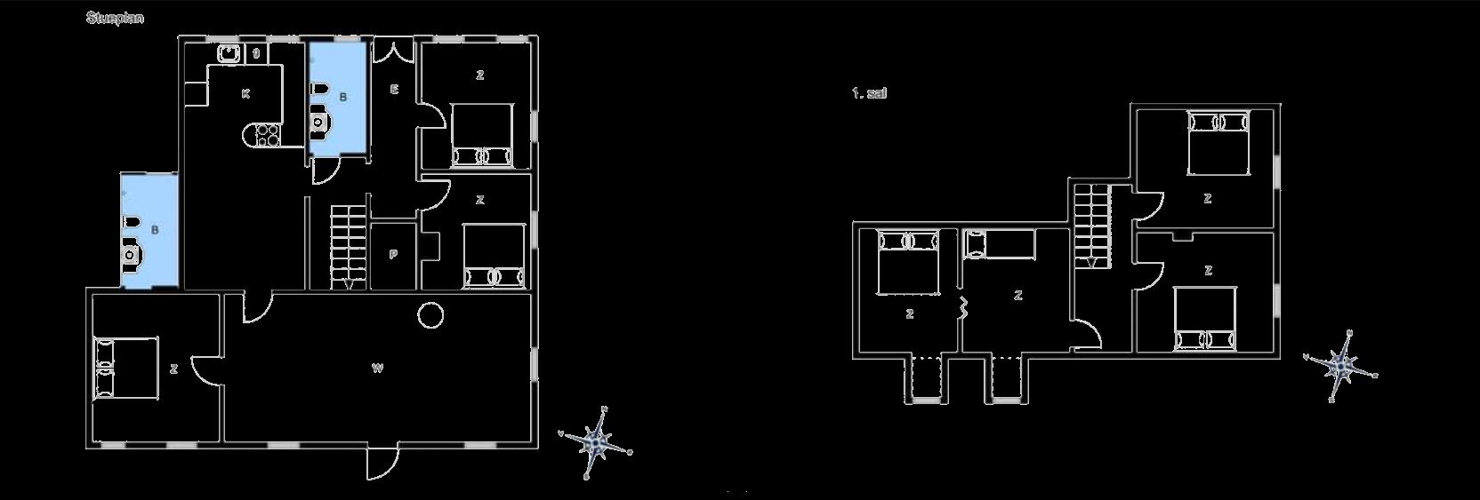 6 Soveværelser: (1DS)+(1DS)+(1DS)+(1DS)+(1DS)+(1S)
