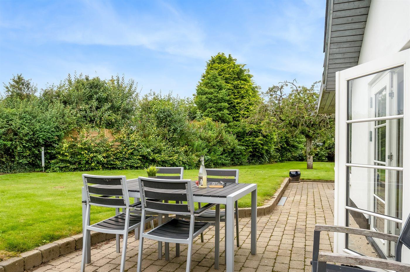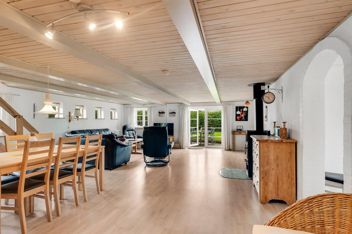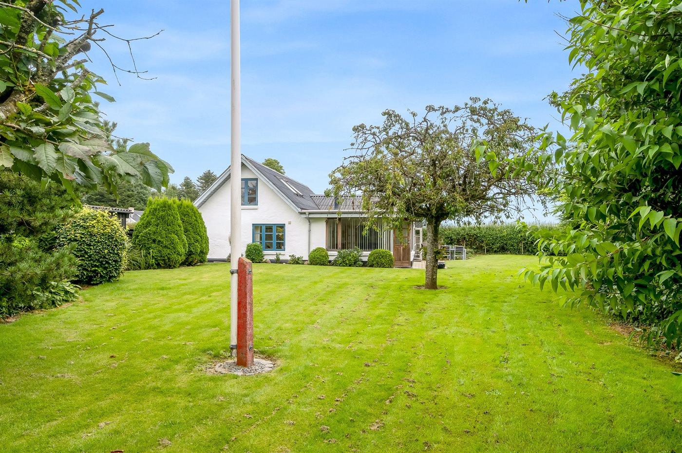 Hyggeligt sommerhus ved Lyby Strand med fjordudsigt, helårsudestue og dejlig have på 1000 m².