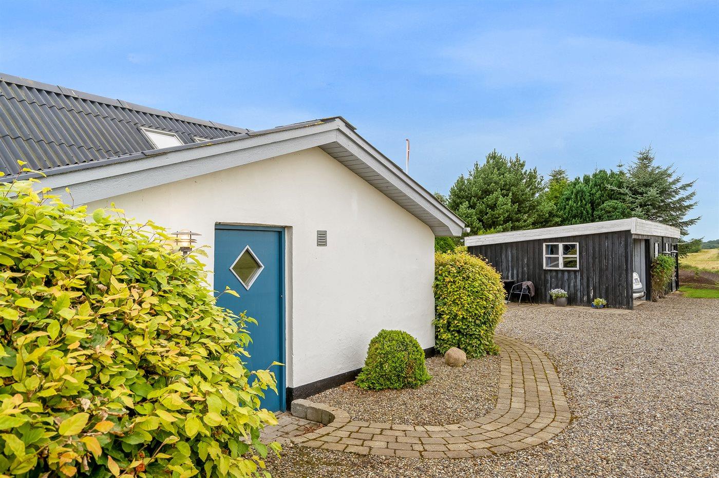 Ferieboligen er beliggende på en 1000 m² stor havegrund. Der er 300 m til fjorden. Nærmeste forretning er beliggende i en afstand af 4000 m. Der er en golfbane i en afstand af 7000 m. Til ferieboligen hører 80 m² terrasseareal. Der er redskabsrum. Sandkasse. Der er garage til rådighed. Parkering ved ferieboligen.