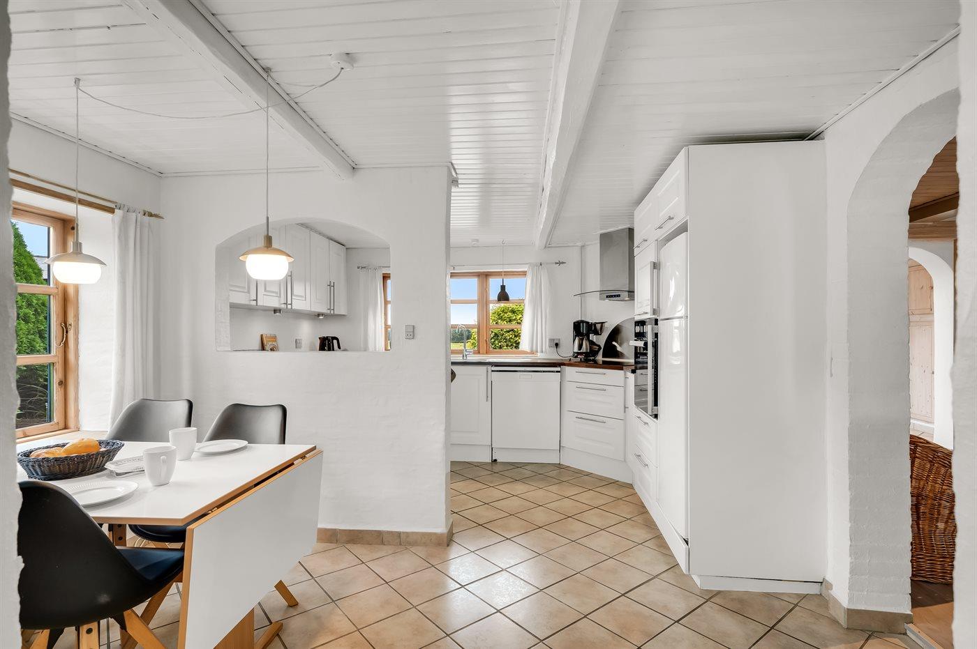 Køkkenet er udstyret med 1 køleskab. Der er 4 keramiske kogeplader, varmluftovn, mikrobølgeovn samt opvaskemaskine.