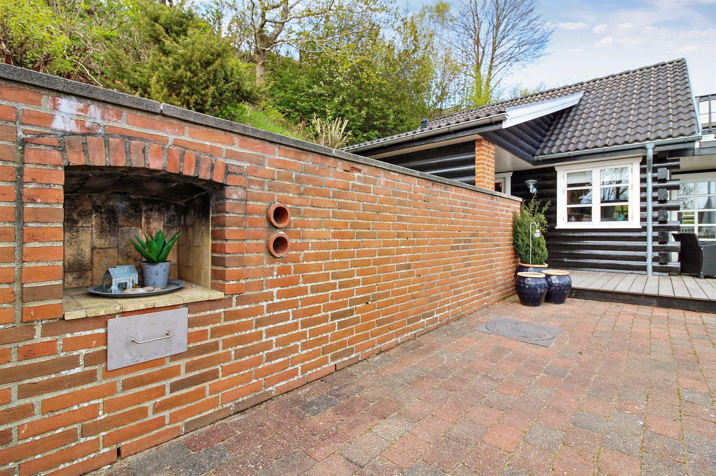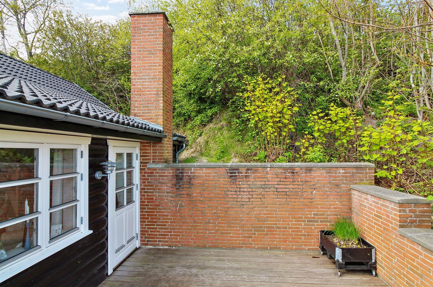 Ferieboligen er beliggende på en 1600 m² stor naturgrund. Der er 10 m til fjorden. Nærmeste forretning er beliggende i en afstand af 5000 m. Der er en golfbane i en afstand af 10000 m. Til ferieboligen hører åbent terrasseareal. Desuden er der overdækket terrasse. Grill til rådighed. Parkering ved ferieboligen.